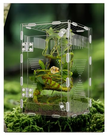 360° Crystal-Clear Acrylic Walls: This Reptile Terrarium offers unobstructed visibility to monitor pets like jumping spiders, tarantulas, or chameleons, with ultra-transparent, scratch-resistant acrylic that stays clear for a long time.
