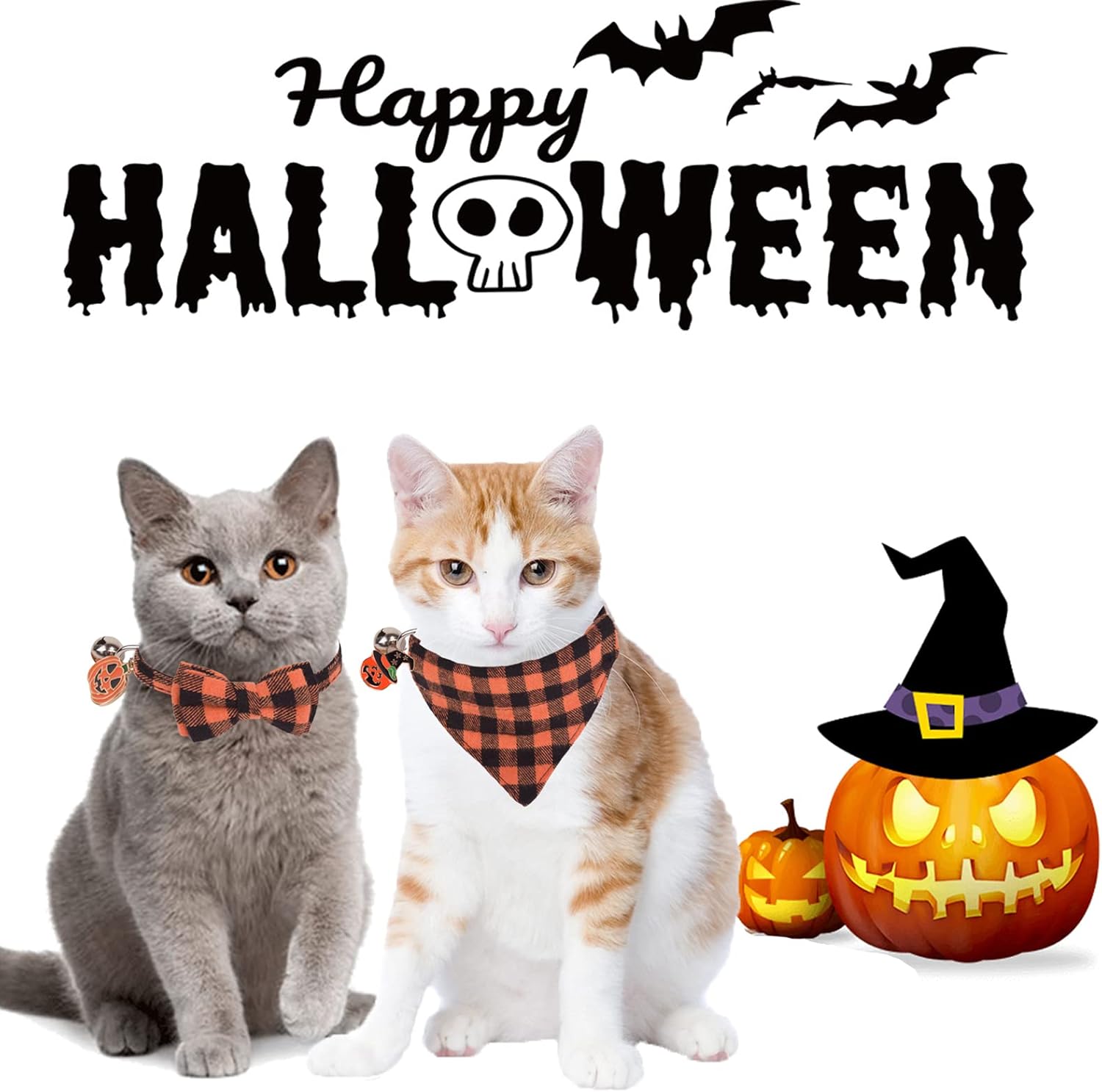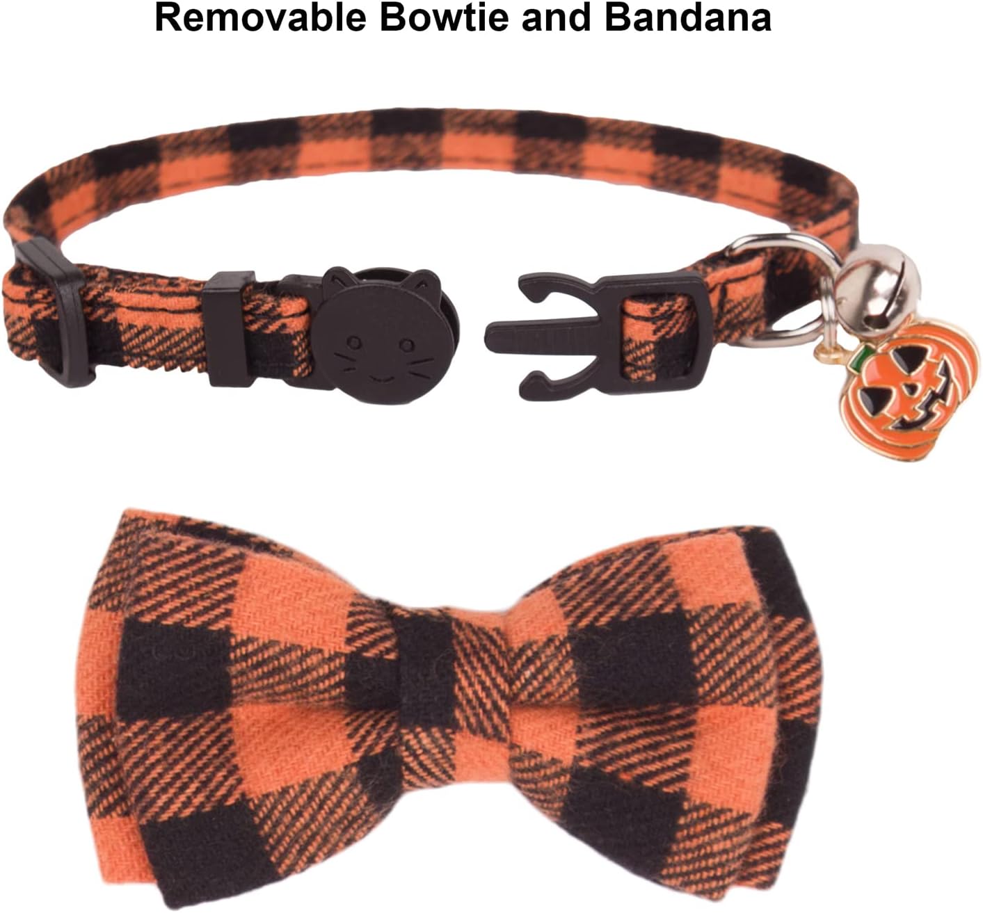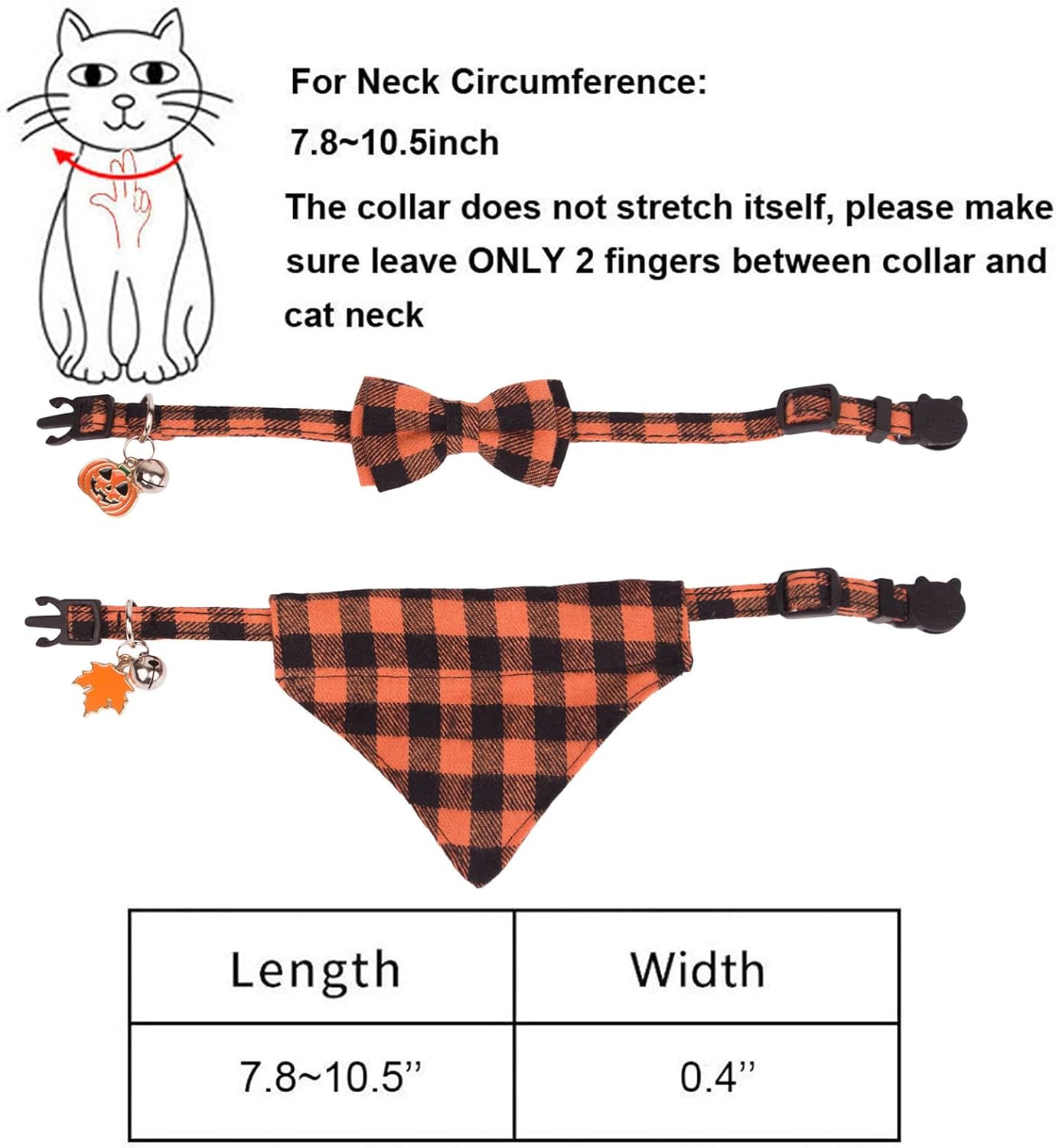 Classic plaid pattern, make your cat attractive on halloween thanksgiving and fall season2* halloween pumpkin and wizard charm, 2* fall pumpkin and maple leaf charm, different charms make collar differentBreakaway Cat CollarsRemovable Bowtie Bandana and Bell