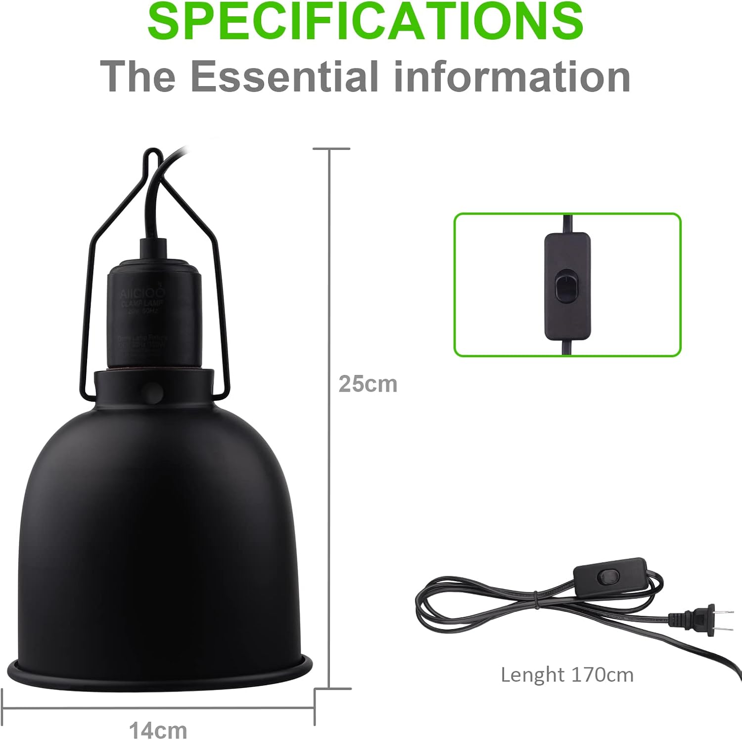 Easy to set up: Our reptile lamp fixture is shipped with 1.8M cable and switch in line. With lamp stand it is easy to hang the hanging hook . Ceramic socket can combine multiple lights with specific bulbs to create ideal lighting system.