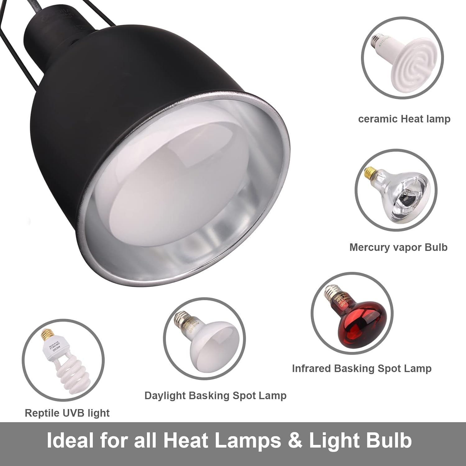 Great aluminum and heat resistance: Our reptile light dome cover is made of good aluminum alloy material that can increase the output of UVA and UVB and endure high temperatures. Radiation and ventilating holes on the top ensure good heat dissipation effect.