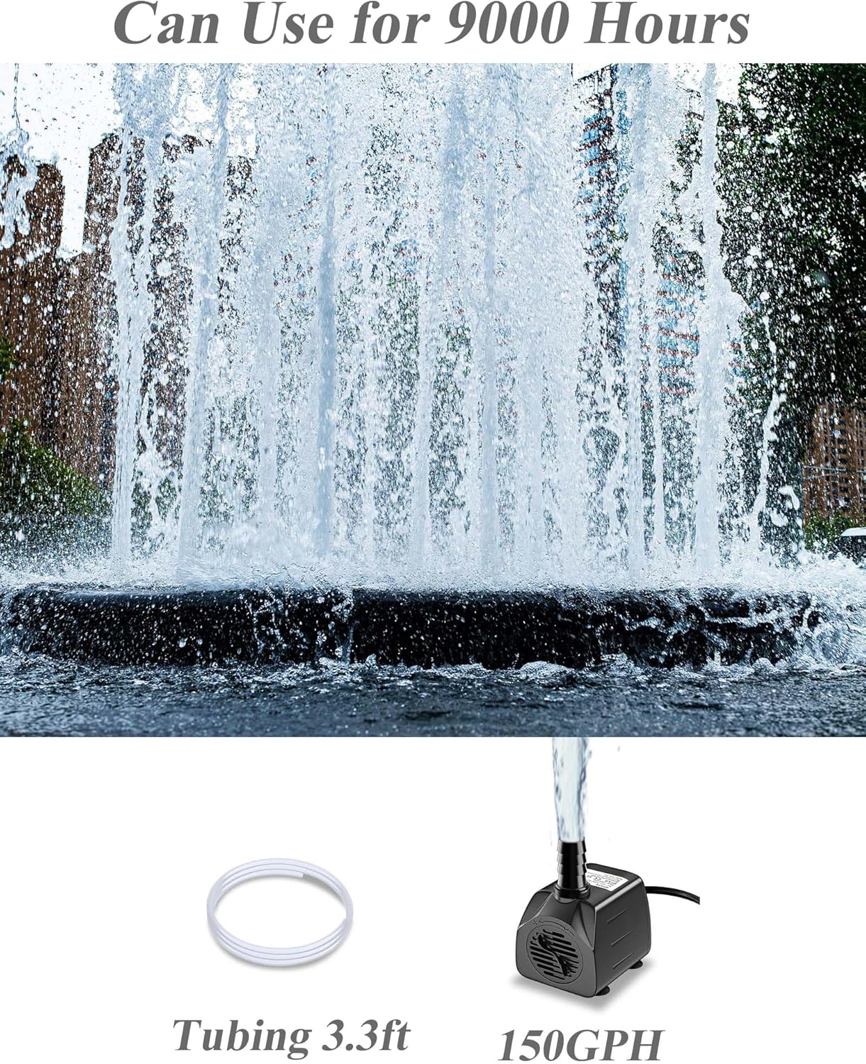 【Adjustable Flow Rate】: The fountain pump is designed with an adjusting slide cover, allowing you to get the speed of water flow you want. The maximal flow rate is 150GPH(570L/H).