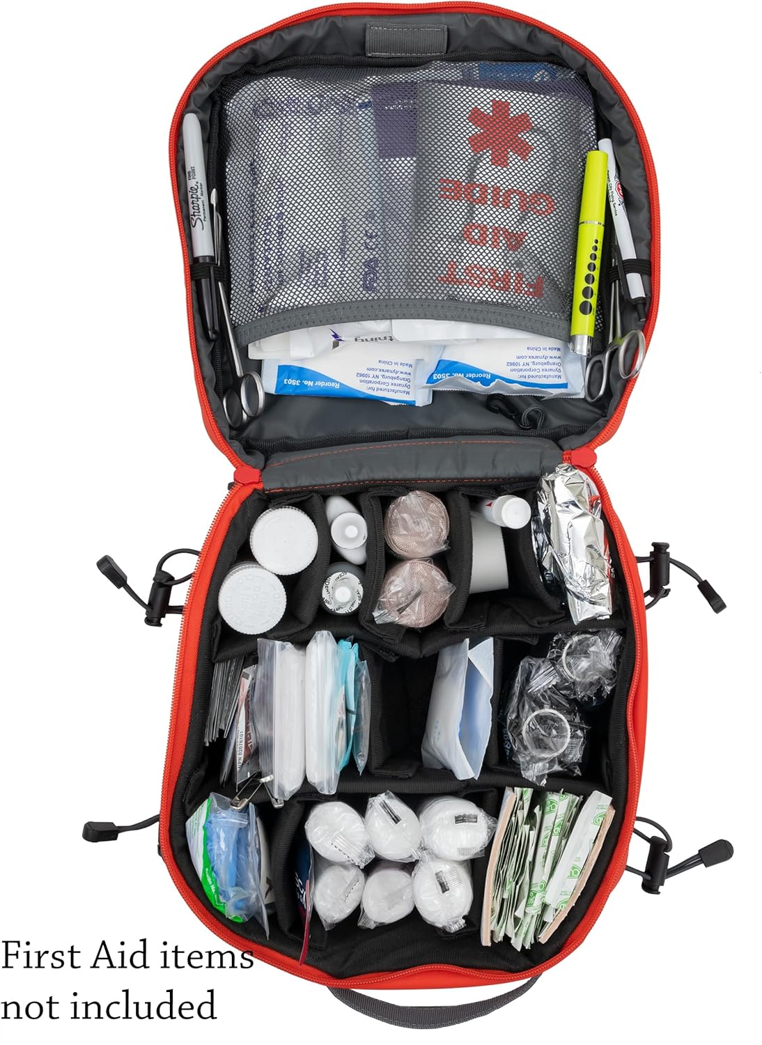 I’m really impressed with this first aid kit. It’s a large size (about 10x10x6), so it holds a lot without being overly bulky. The layout inside is very well thought out. One side has large Velcro-adjustable pockets that make it super easy to organize supplies and keep them in place, while the other side has a roomy mesh pocket that’s perfect for bigger items like a splint. The quality of the fabric and stitching feels durable and built to last, and the color with the reflective handle is a smart touch for visibility and quick grab-and-go use. Overall, it’s a practical, sturdy, and well-designed kit—I’d definitely recommend it.