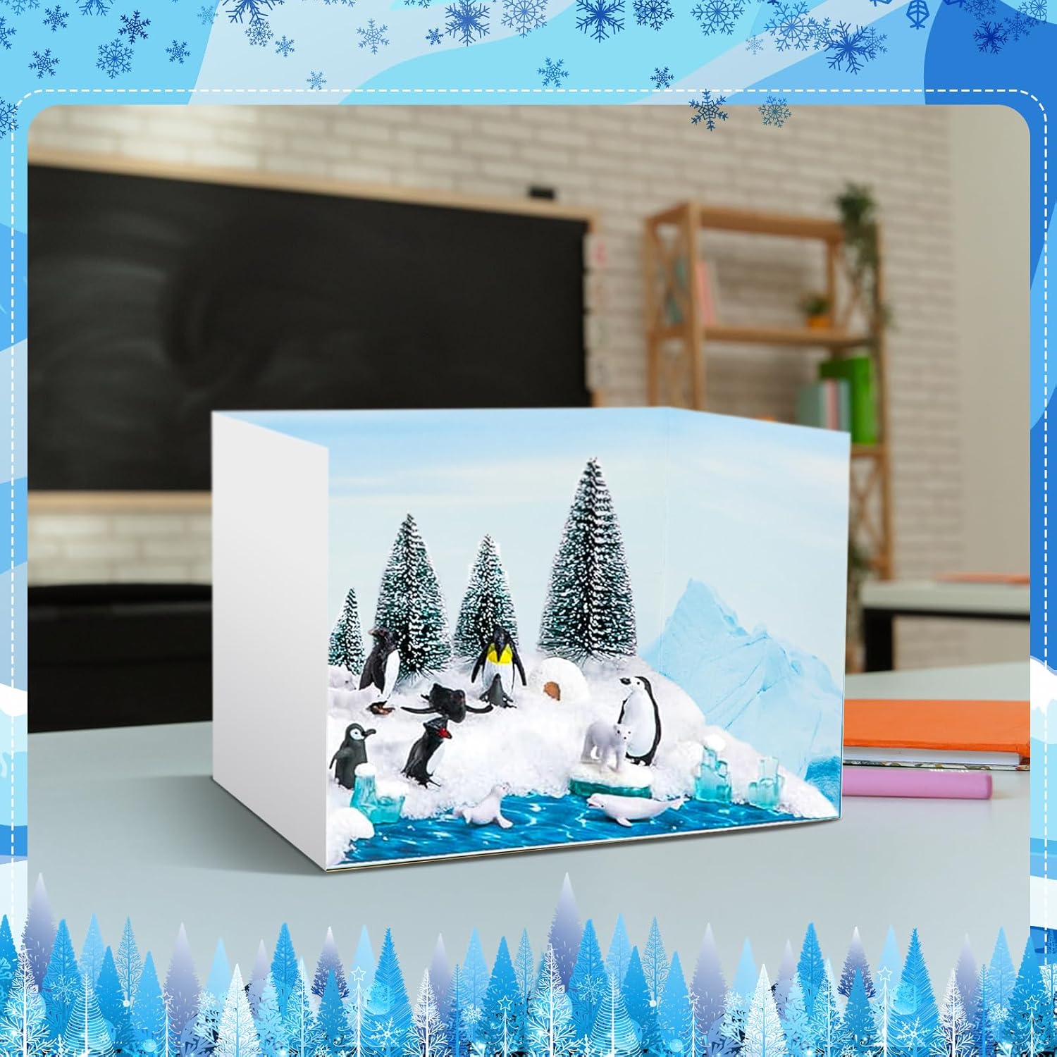 AmazingSpark 8 Pcs Arctic Style Diorama Box and Water Sticker Decor, Ocean Habitat Diorama Project Supplies Set, Cardboard Display Case Kit & Water Sticker with Double Sided Tapes for DIY Crafts Toys