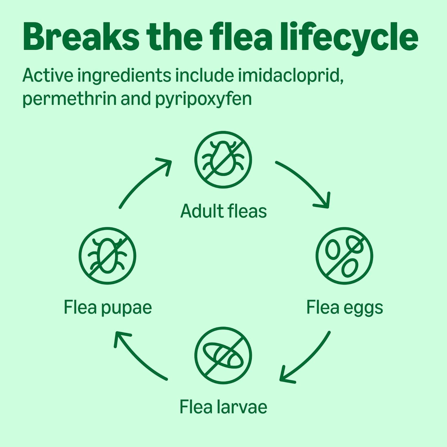 Active ingredients FiImidacloprid, Permethrin and Pyriproxyfen prevent flea infestations by killing flea eggs, flea larvae, mosquitos, biting flies and chewing lice