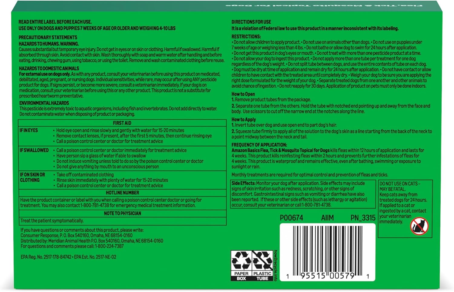 8 reviews for Amazon Basics Flea, Tick & Mosquito Topical Treatment for Small Dogs (4-10 pounds), 6 Count (Previously Solimo)