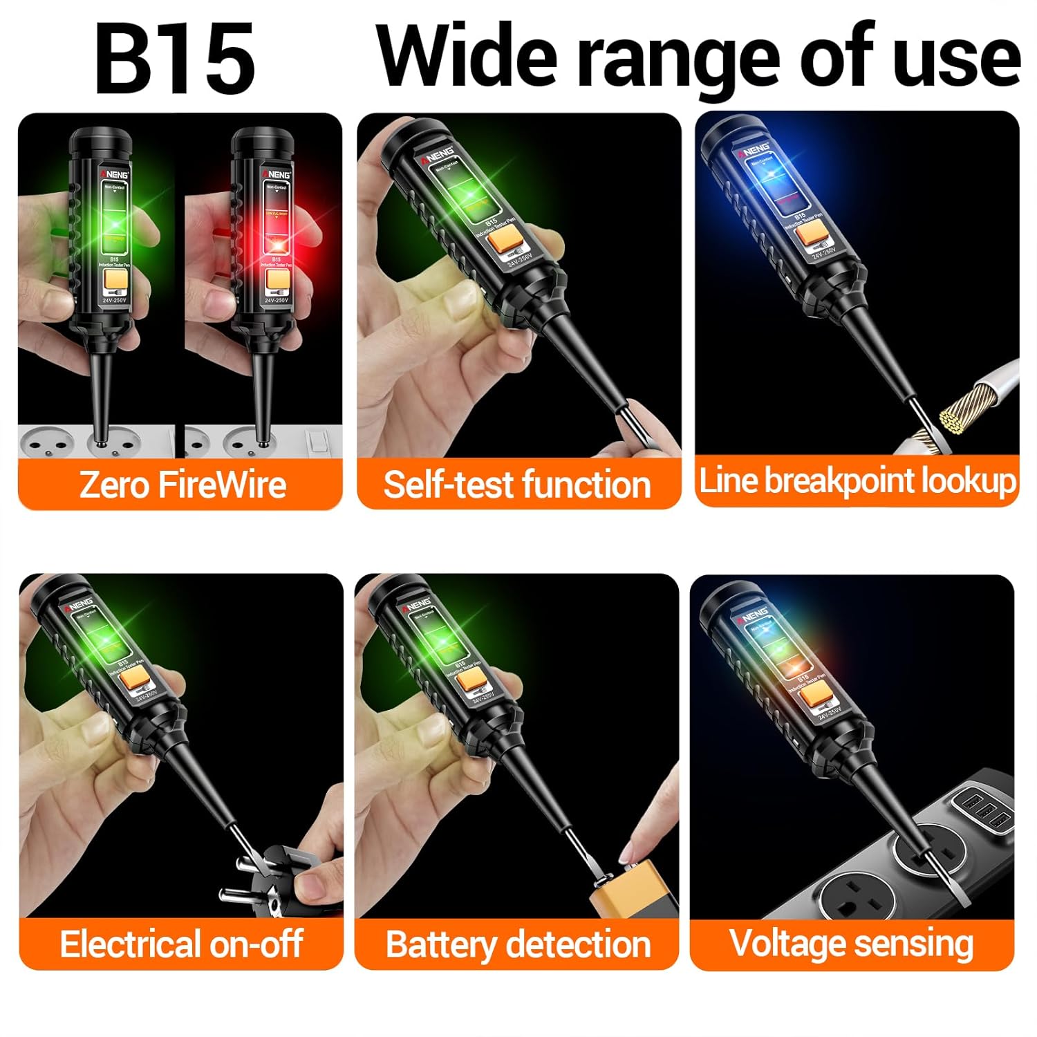 Versatility: ANENG TH202 infared thermometer offers a 12:1 distance-to-spot ratio, allowing precise temperature measurements from a safe distance.It’s perfect for checking surface temperatures on items like pizza ovens, meat, grills, griddles, HVAC systems, car engines, and more. Meanwhile,B15 volt tester automatically detects AC voltage in cables, circuit breakers, lighting fixtures, switches, outlets, and wires, making it easy to spot electrical issues quickly and efficiently