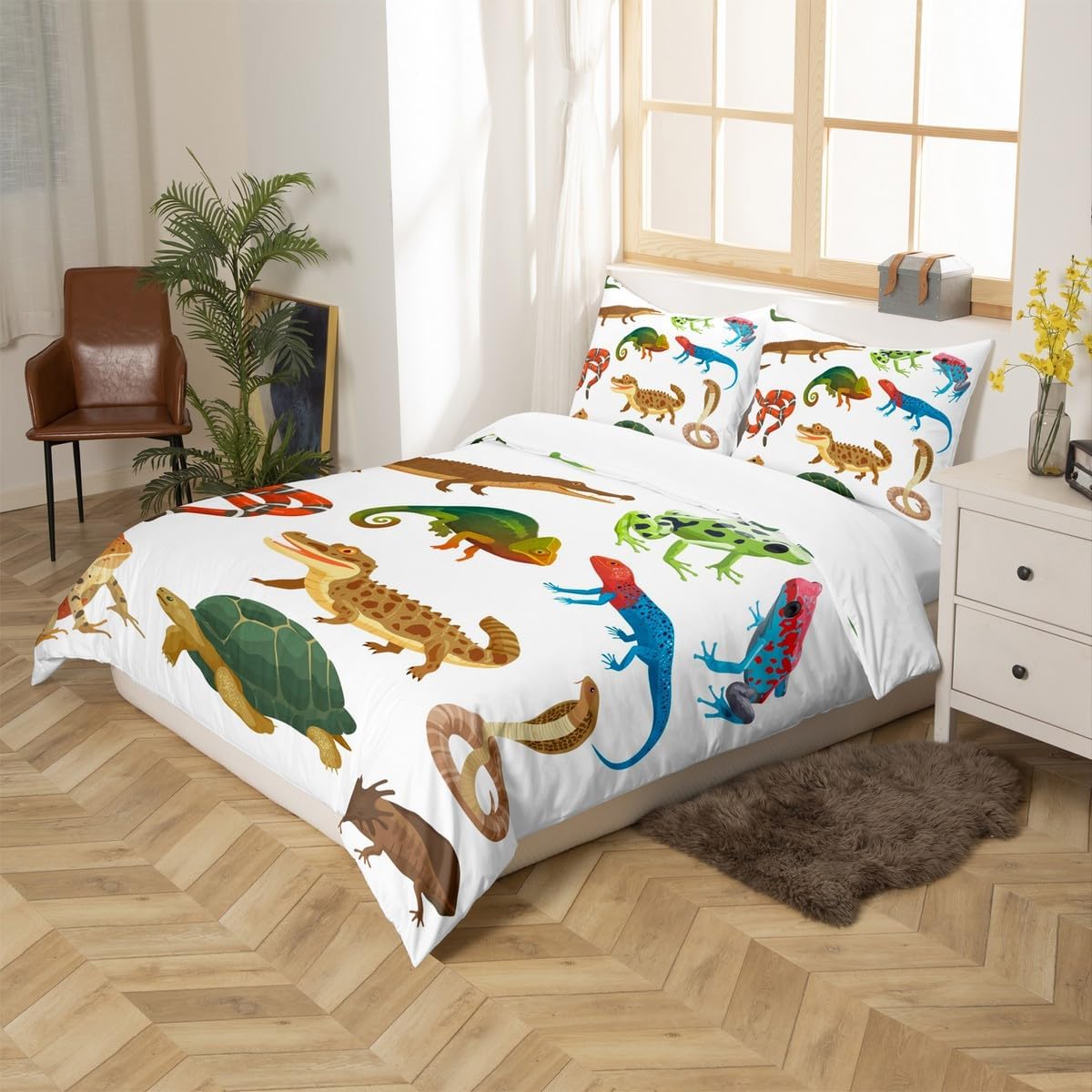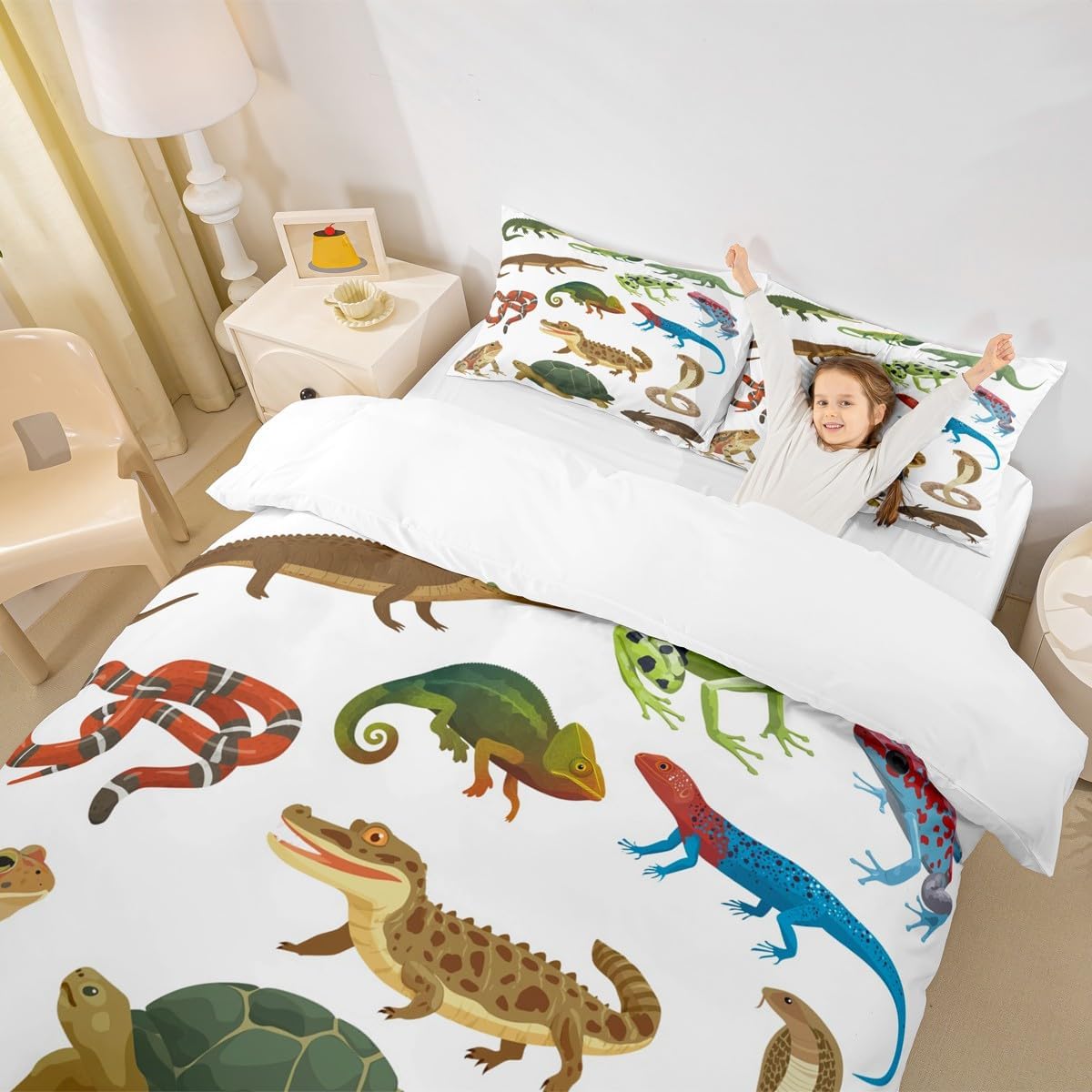 6 reviews for Animal Bedding Set 2pcs for Kids Boys Crocodile Frog Snake and Tortoise Decor Comforter Cover Reptile Duvet Cover Set Microfiber Bedspread Cover with 1 Pillow Case(No Comforter) Twin Size