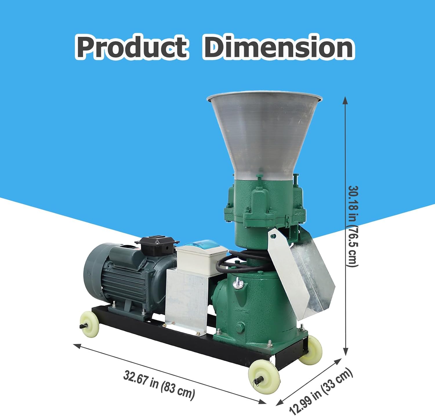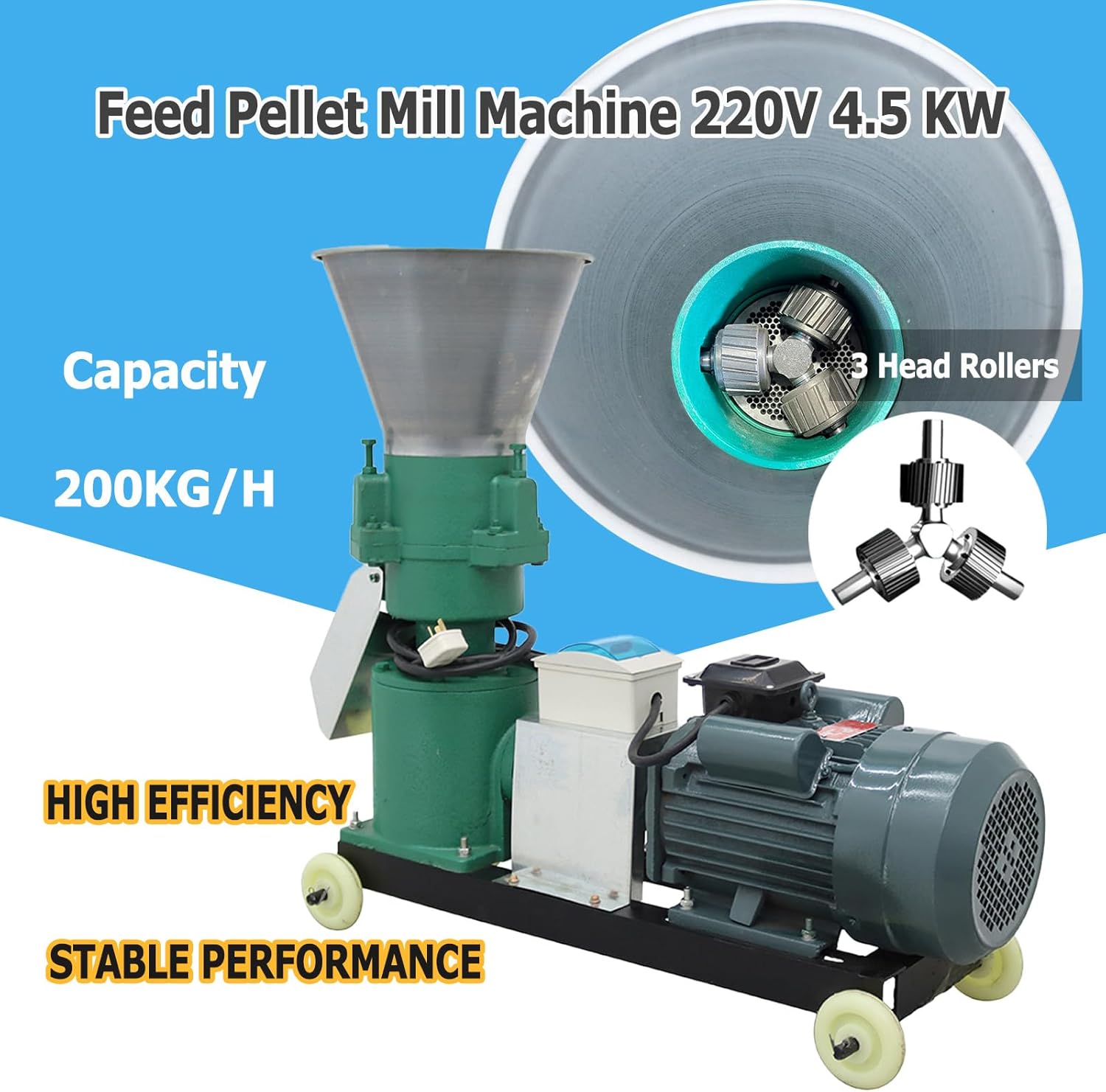 Animal Feed Pellet Mill Machine 6MM Holes Pellet Electric Feed Pelletizer with 3 Head Rollers 200KG/H Capacity 220V 4.5KW