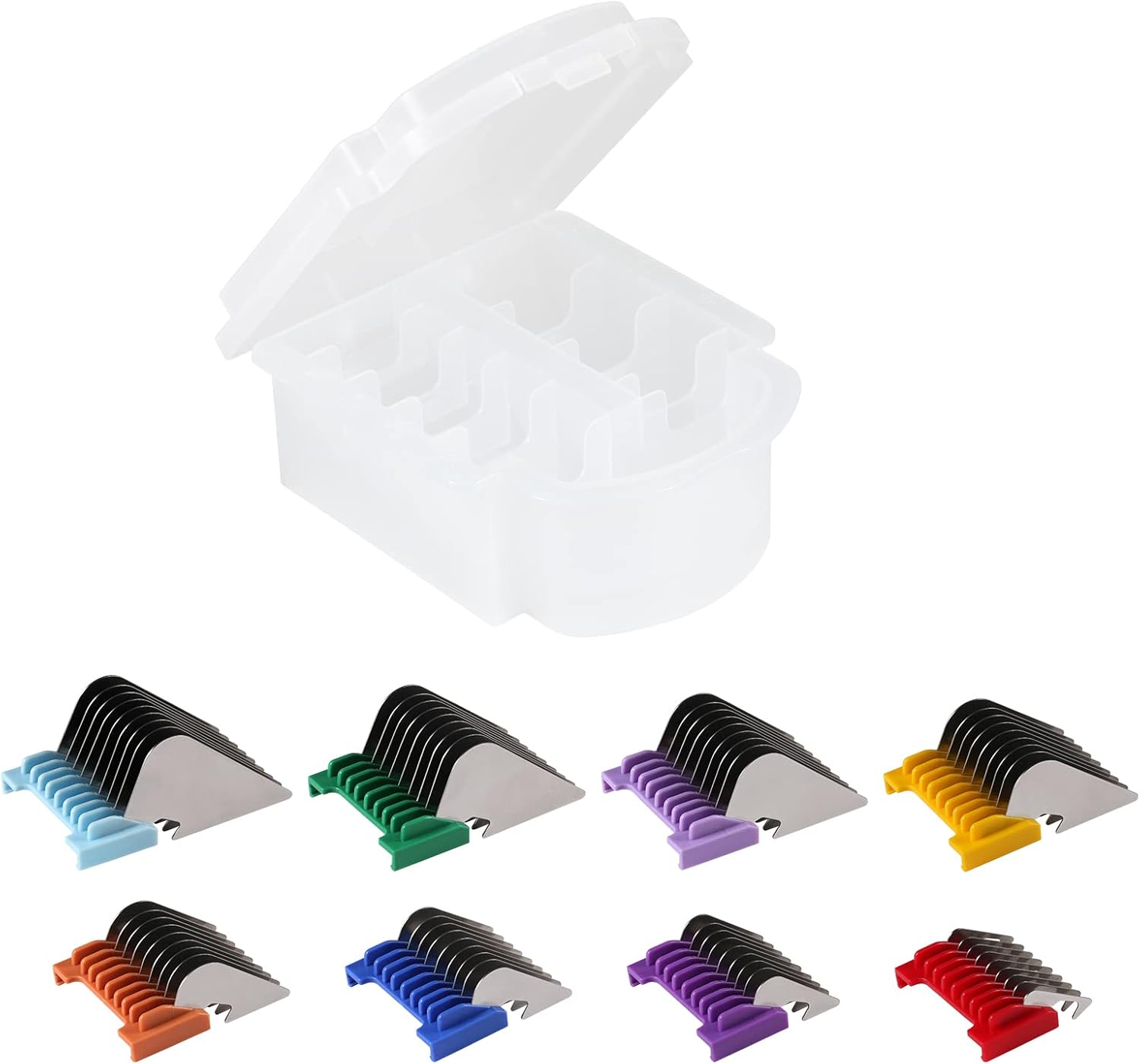 These guides work better than any I’ve used in the past. Recently I bought a new set of clippers which required a different type of attachment (slip on rather than clip) than my old clippers. Although the new clippers came with a small set of guides the short and medium lengths were very short so I searched for a better mix of shorter sizes and found this set. I noticed right away that they are partly metal and that seems to make the guides give a smoother and more even clip. I’m very happy with the results and my sweet poodle no longer looks like he had a run in with a lawn mover after I’ve finished working on him.