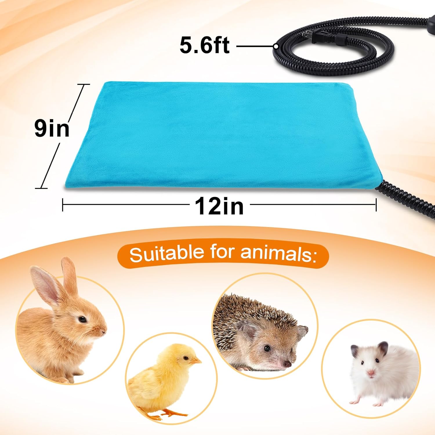 We used this for our two bunnies. Itâs a little small for both of them to get in but the temperature is great and the covered cord is well made. I felt comfortable knowing they would t be able to chew it.