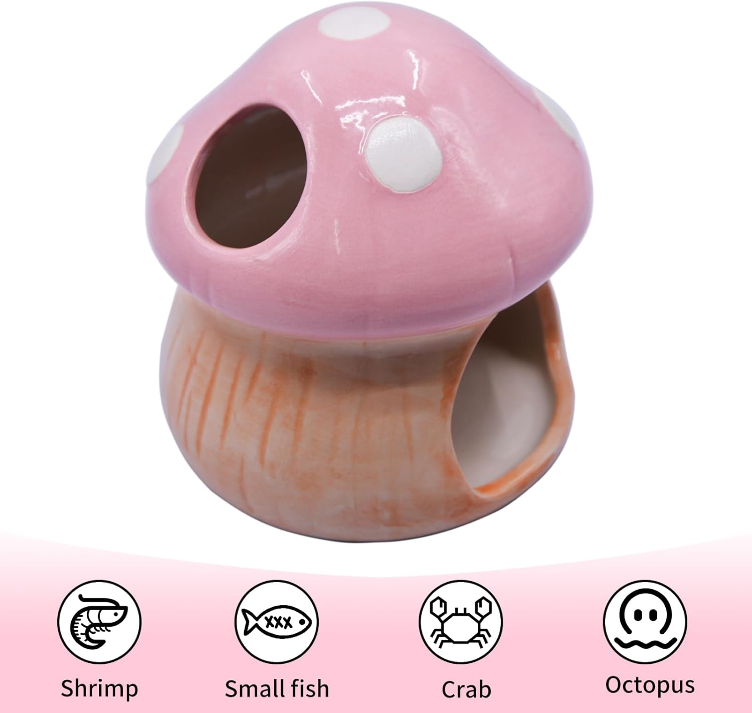 bought two of these little ceramic mushroom hideaways for our fish tanks â one pink and one red â and theyâre absolutely beautiful. The fish love swimming in and out of them, and they add such a fun pop of color to the tank. Theyâve held up perfectly, and when they get a little dirty, I just rinse them off and pop them back in. No complaints at all â theyâre sturdy, easy to clean, and look even better in person. ðð