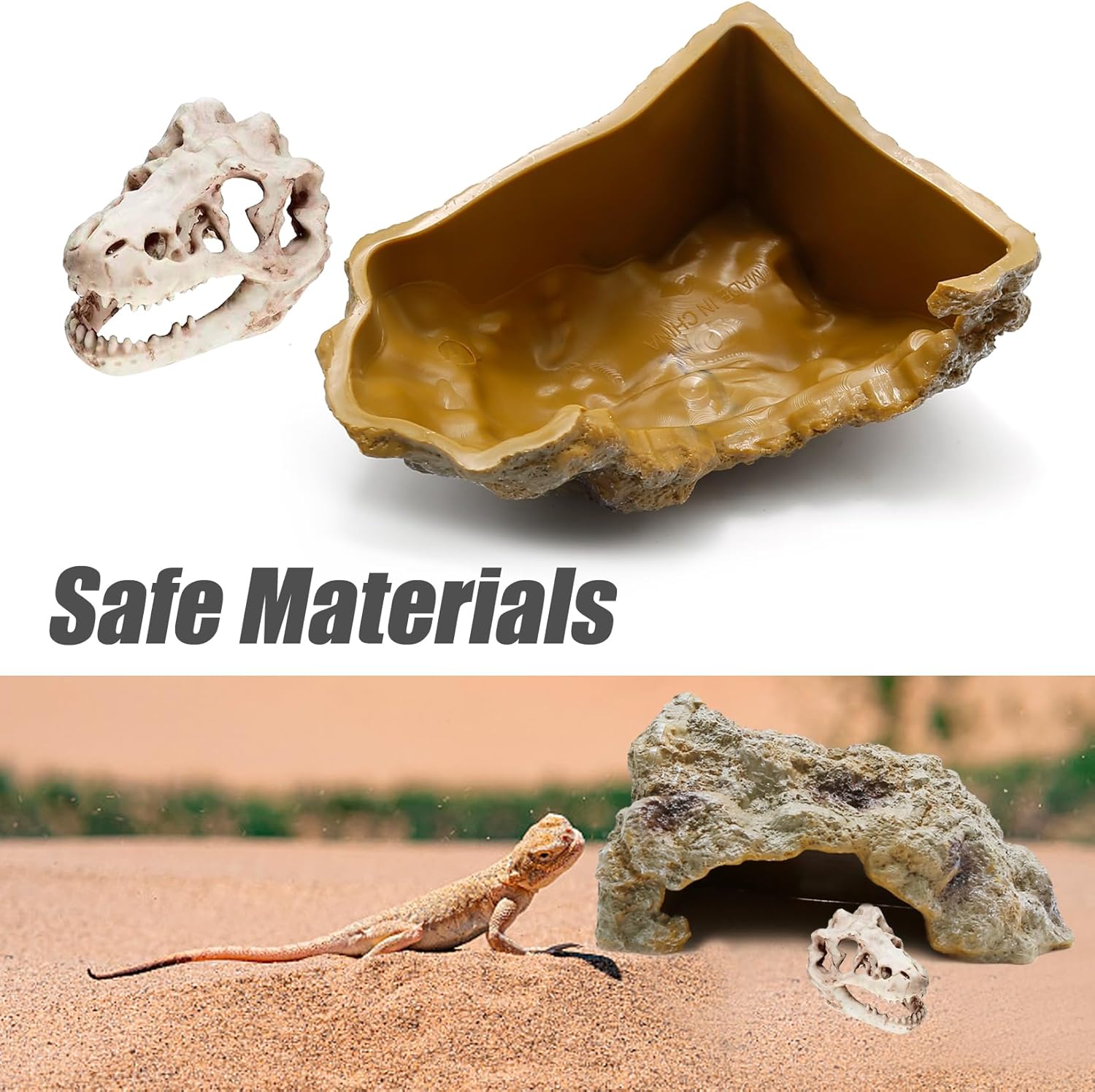 Anxingo Reptile Rock Reptile Cave Hideout for Snakes/Geckos/Lizards/Turtles and Other Amphibians, with Dinosaur Skull (Small)