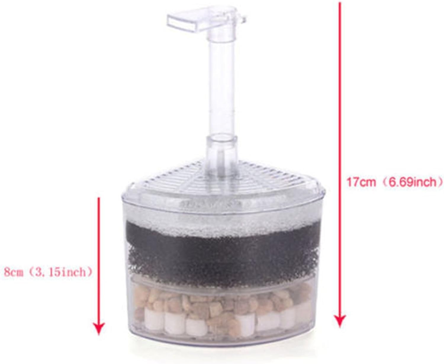 How Does It Work? This filter uses bubbles of air from an external air pump, or an integral water pump to draw water through filter. As water is drawn out through the lift tube or pump, it is replaced by water entering the filter. The top layer of white filter pad provides a mechanical filtration. The black bio-sponge in the 2nd layer and ceramic rings with gravel provides biochemical filtration. They support the colonization of bacteria. The bacteria help to break down harmful waste (ammonia and nitrite). What Maintenance Does It Require? The sponge will need to be rinsed every time it becomes dirty, about once every 2 to 4 weeks. It’s helpful to reserve the beneficial bacteria by washing the sponge gently with water from the fish tank instead of tap water. Dimension: 2.75″(L) x 3.15″(W) x 7.0″(H)
