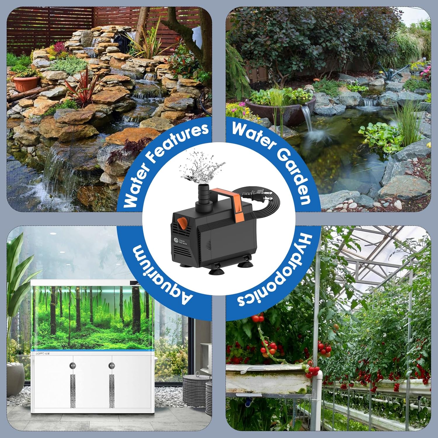 MULTIPLE APPLICATIONS – Ideal for both freshwater and marine water, this submersible fountain pump is perfect for fish tanks, ponds, waterfalls, fountains, hydroponics, horticulture, and water gardens. Enjoy its versatility in various aquatic settings.