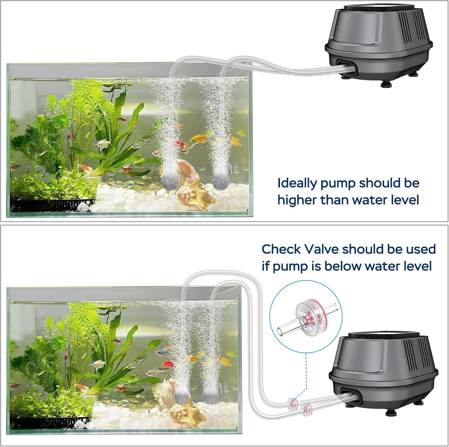 COMPREHENSIVE KIT – This fish tank bubbler includes 5 x airline tubing, 5 x air stones, 5 x check valves, and 2 x air filter pads. It provides all necessary components for a quick and straightforward setup—no need for extra purchases!