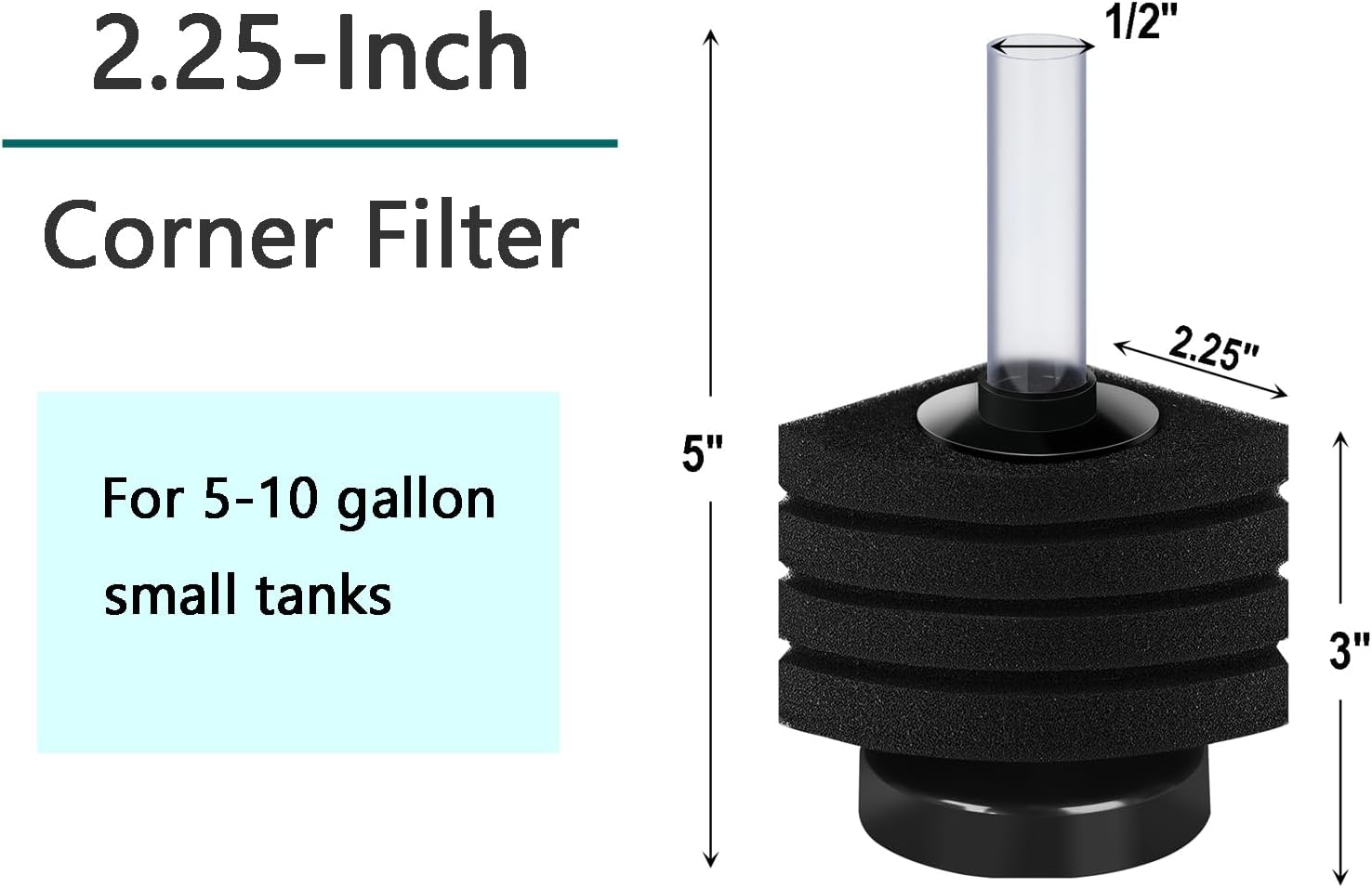 Recommend tank size: up to 10 gallon; Dimension: 2.25″Lx2.25″Wx5.00″H