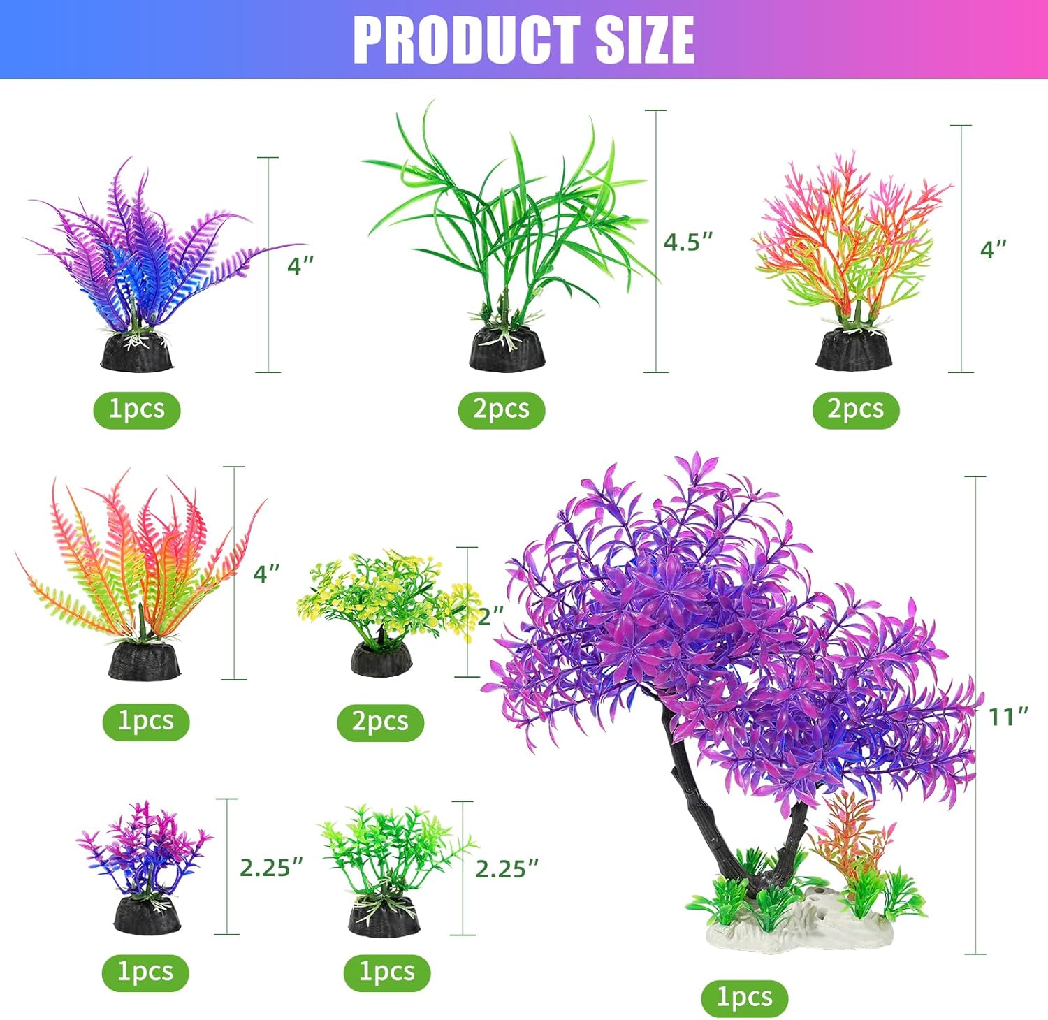 AQUANEAT Artificial Aquarium Plants, Fish Tank Purple Tree Decoration Set, Plastic Accessories, 11pcs