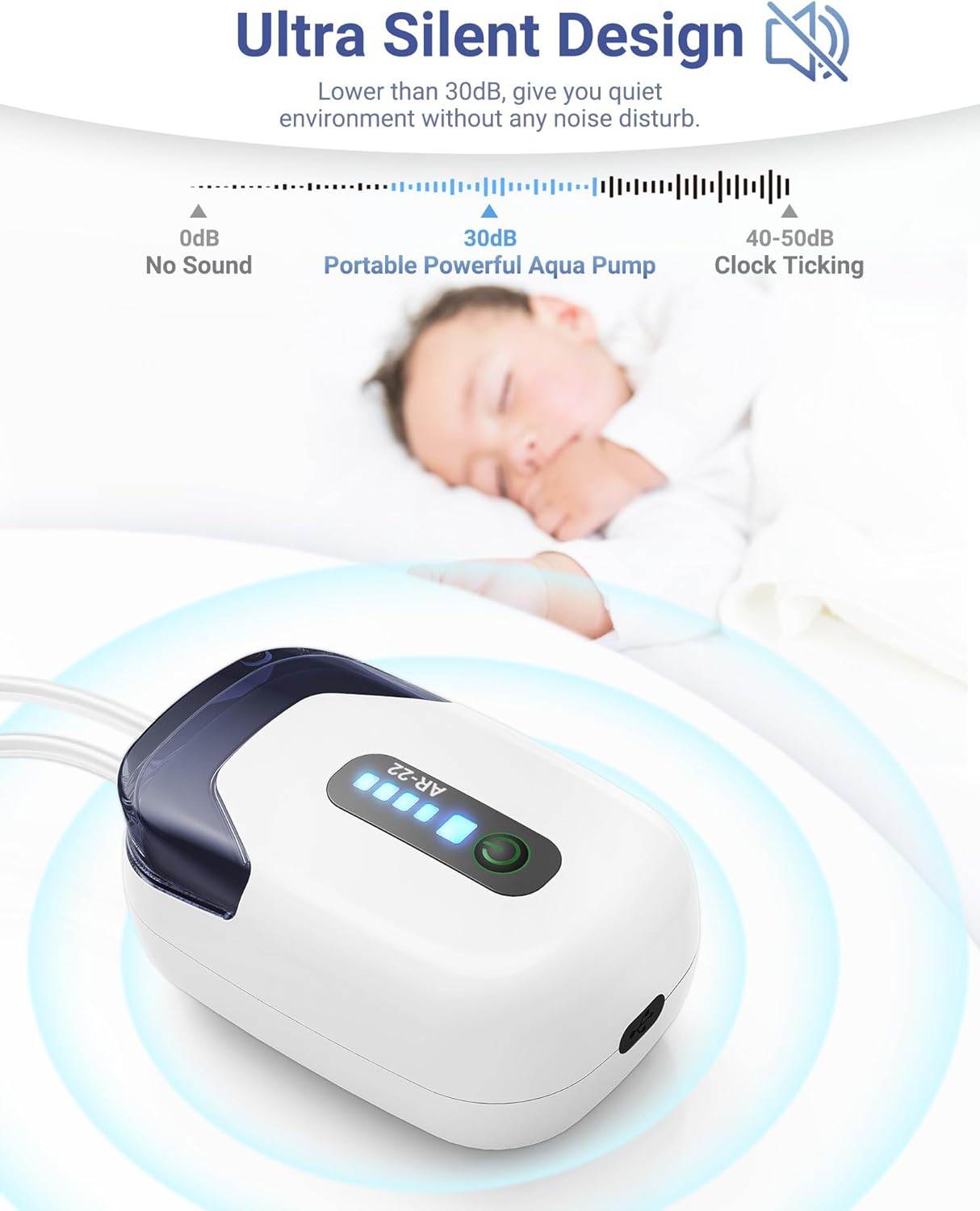 Aquarium Air Pump, Rechargeable Portable Oxygen Pump with Single/Dual Outlets, Quiet Aerator for Fish Tank up to 30/70 Gallon, Outdoor Fishing, Fish Transport and Power Cut.