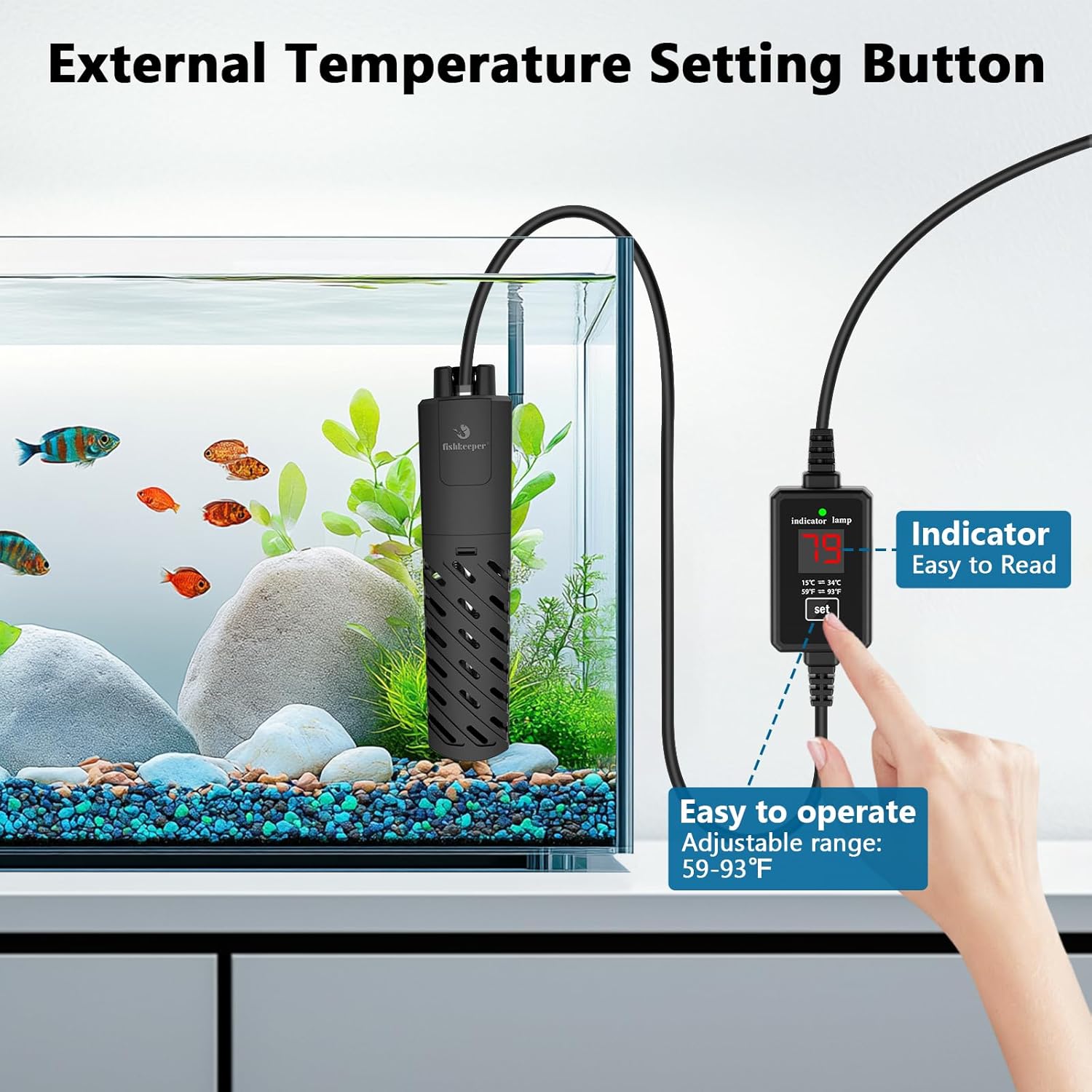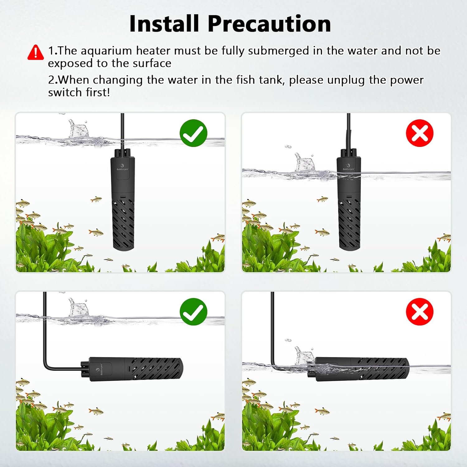 Advanced Temperature Control with Memory Function:Equipped with a built-in thermostat with 1°F accuracy, this fish tank heater maintains a consistent water temperature. The PID control system minimizes fluctuations, ensuring stable heating. Plus, the memory function remembers your previous temperature settings, so there’s no need to reprogram after a power outage.
