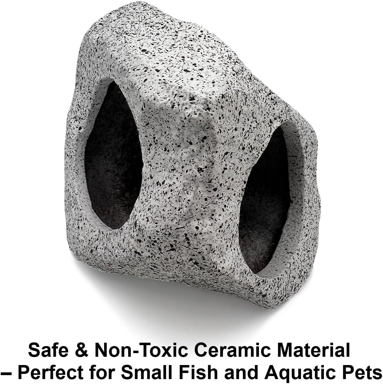 Aquarium Hideaway Rock Cave – Safe and Non-Toxic Ceramic Fish Tank Decorations, Betta Fish Cave and Aquarium Decor for Small Fish to Rest, Hide, and Play, Perfect Natural Tank Ornament