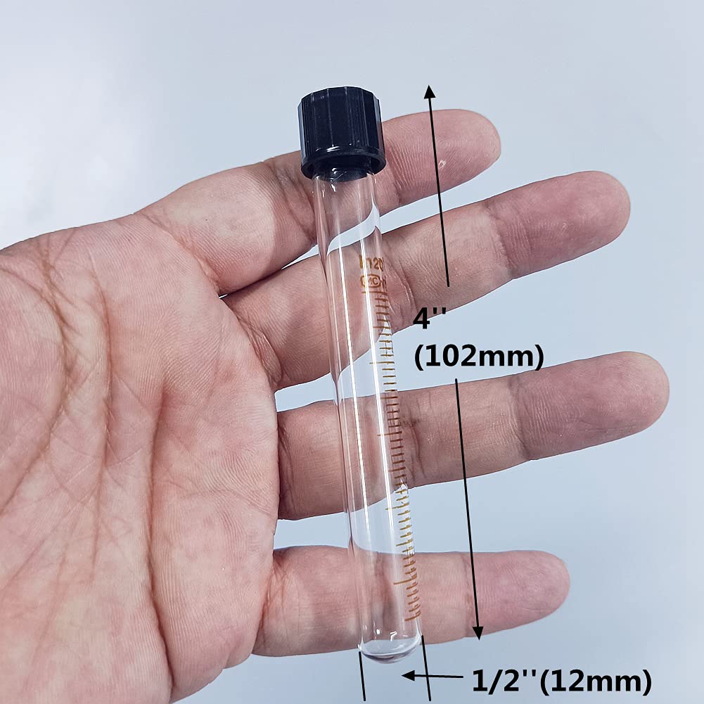 Package include : 6 pcs ; Material : Glass body & plastic cap ; Size : 4inch(102mm) x 1/2inch(12mm) (D x L) ; Great for aquarium water quality test,test hardness, carbonate, nitrate, nitrite, pH & more, etc ; Also for scientific experiment,classroom,lab and so on .