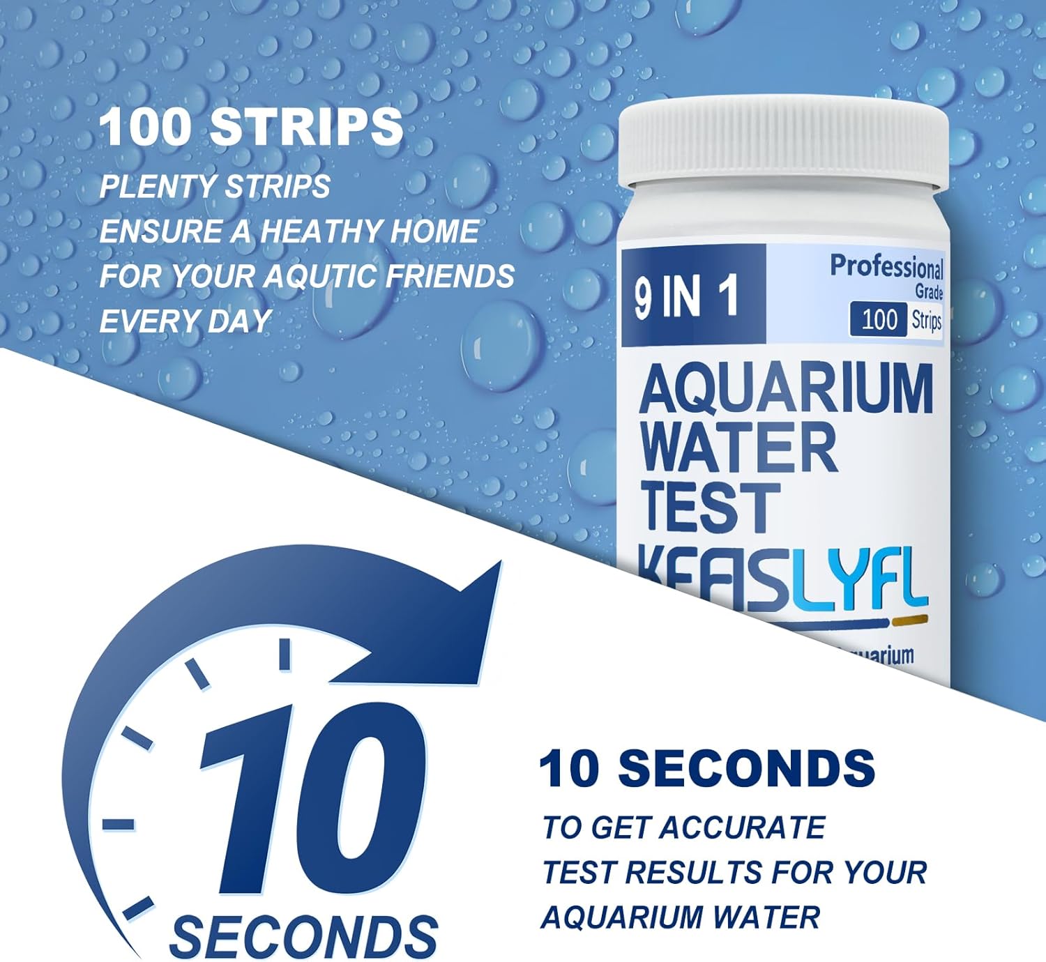 Aquarium Test Strips,100 Strips 9 in1 Saltwater and Freshwater Aquarium Test Kit for Aquarium,Pond and Fish tank,Testing Carbonate,Alkalinity,pH,Hardness,Free Chlorine,Nitrate,Nitrite,copper and Iron.