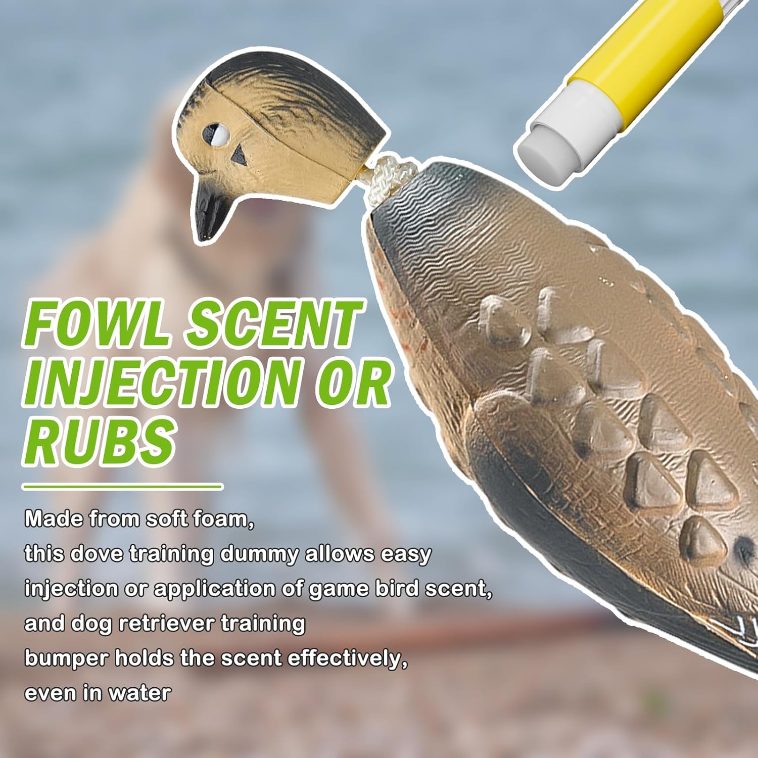BOTH LAND & WATER TRAINING: This dove dummy can float on water without becoming waterlogged. Perfect for a variety of training exercises, like water retrieves, distance retrieves, and basic retrieves, You can infuse the dove dummy’s body with the scent of waterfowl, dove, or even duck, or you can apply it to the rope on its neck, can effectively maintain scent even in water