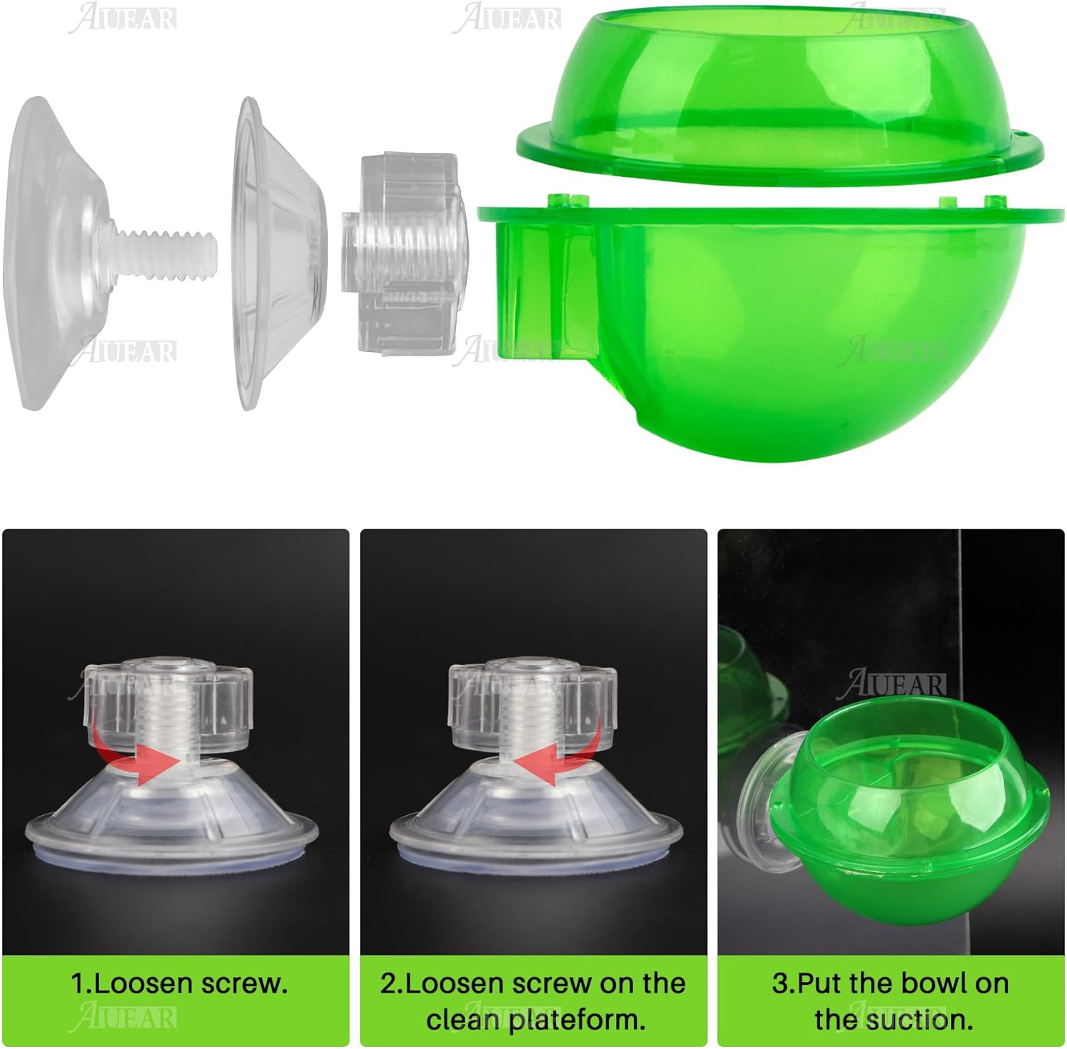 It took a second to figure out how to install them bc I didnât know the bowls were removable and the nut part has to be positioned perfectly for the bowl to slide back on but the suction is wonderful. My little babies love them. Even if there are crickets in them they love just hanging out on and in them.Picture of my babies just bc they are so cute.