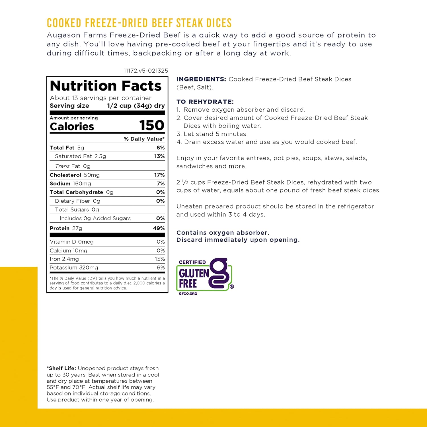Augason Farms Freeze Dried Precooked Beef Steak Dices Can, Emergency Food Supply, Everyday Meals, 13 Servings