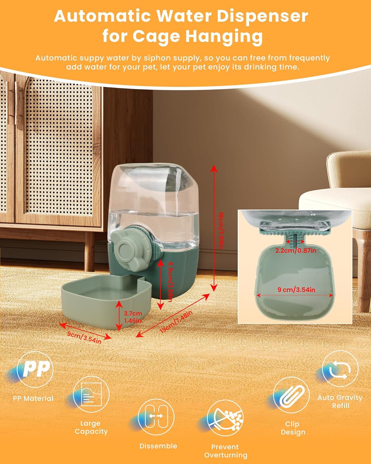 Automatic Replenish Pet Waterer, 1L Capacity Auto Siphon Gravity Cage Hanging Water Dispenser Set for Dog and Cat Small Animals, Removable Pet Water Bottle Water Container (Waterer, Green1)