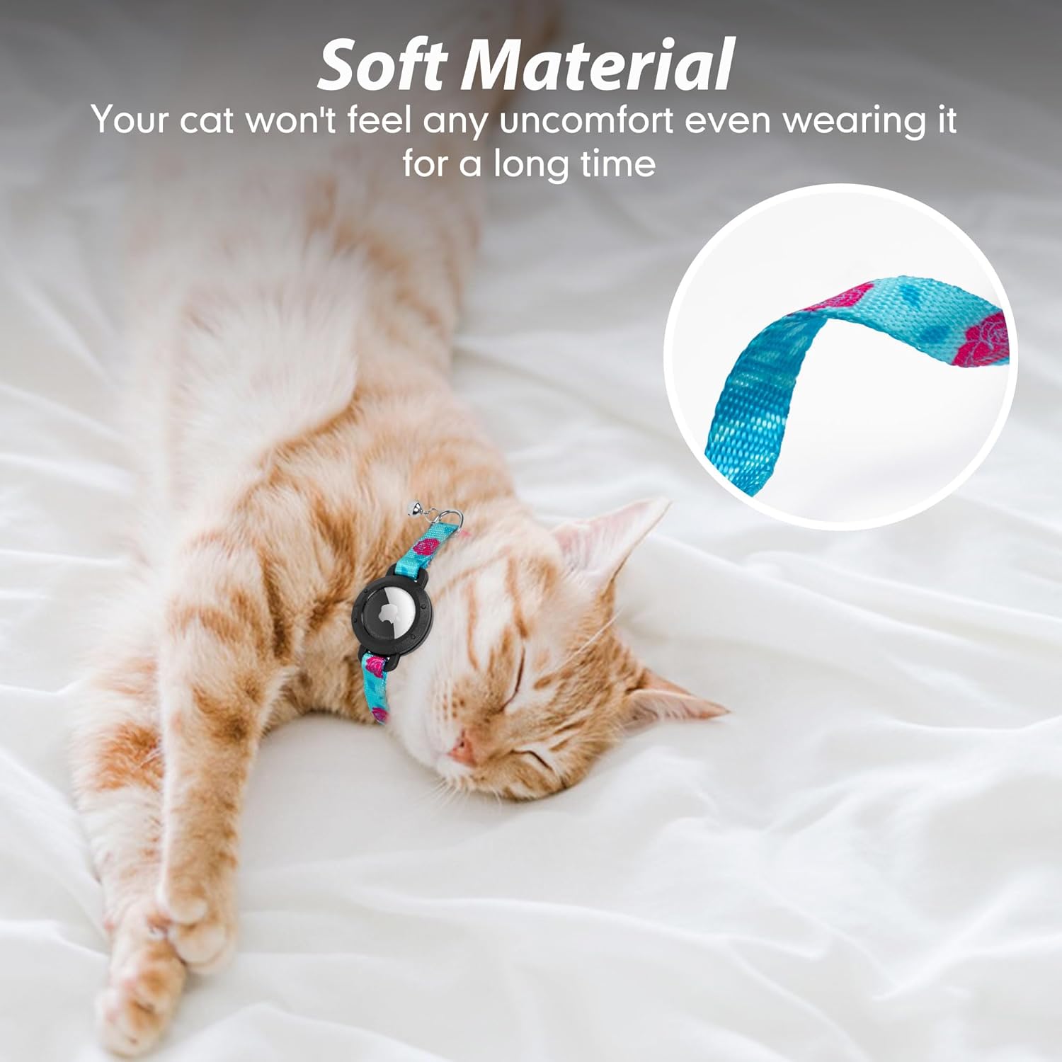 This is a great breakaway collar for my cat. It fits nice and snug with the way it adjusts. I love the space for the airtag to go so that it adds another layer of protection and safety for my kitty. The clip is strong enough to do its job without worrying about it injuring the cats. I love the blue and pink together, the roses are a nice touch.