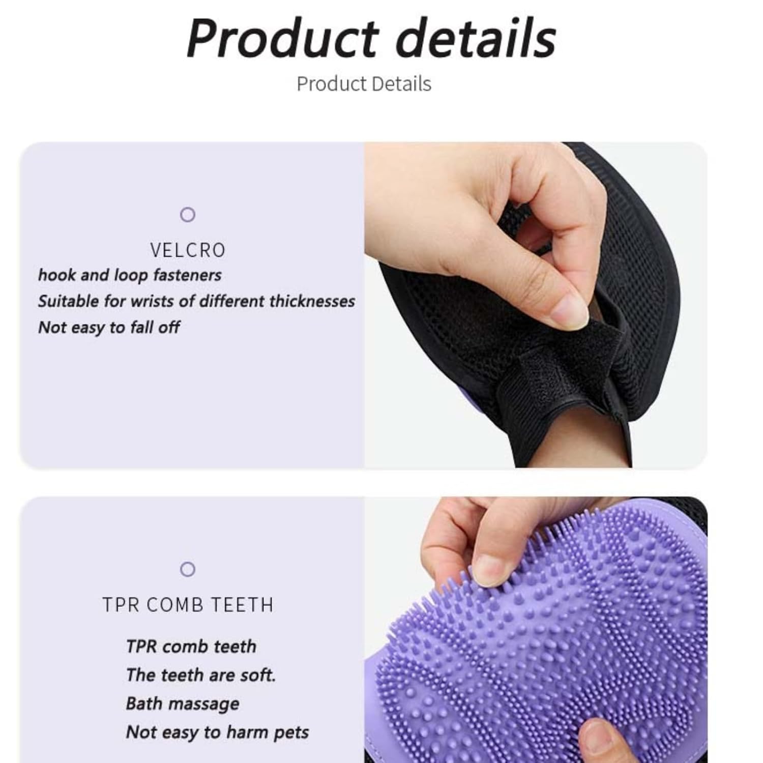 Allow them to air dry. . Effective Hair Removal And Hair Removal When Petting Your Cat Or Dog, Gently Remove Loose Fur. Our Beauty Gloves Are Designed With Flexible Silicone Heads That Can Capture Up To 90% Of Fallen Hair, Reducing Clutter And Keeping Your Home Clean. Dual Functions: Beauty Care And Massage This Pet Depilation Glove Is Not Merely A Depilation Tool; It Also Offers A Soothing Massage, Promotes Blood Circulation, And Strengthens The Bond Between You And Your Pet. It Is Very Suitable For Cats That Don’T Like Traditional Brushes. Waterproof And Suitable For Bathing Use It During Bathingcat Grooming Gloves, To Effectively Scrub And Clean Your Pet. This Kind Of Glove Is Made Of Waterproof Material And Can Be Used With Shampoo To Thoroughly Clean Hair While Collecting Loose Hair. One Glove Fits All Paws And Hands The Design Is Suitable For Both The Left And Right Hands, Cats, Dogs, Rabbits, And Even Horses. The Adjustable Strap Ensures Safety And Fits All Hand Sizes. Easy To Clean And Reusable Just Rinse It In Water Or Throw It Into The Dishwasher For Cleaning. These Gloves Are Made Of Durable And Eco-Friendly Silicone And Can Be Used During Multiple Washes.