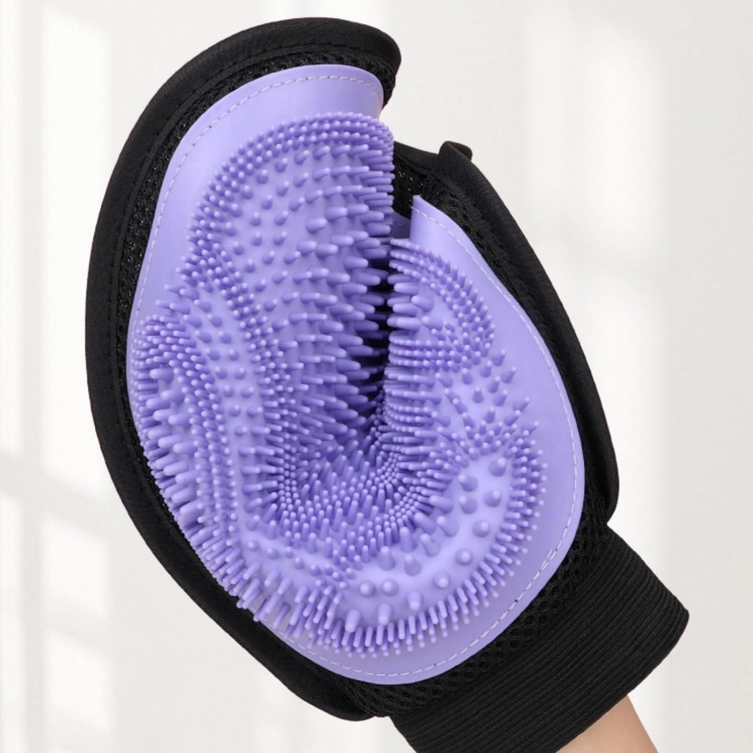 Bathing Massage Gloves, Cat Caressing Gloves, Cat And Dog Hair Removal, Cleaning Massage Gloves ,Gentle Hair Remover Mitt For Long/Short/Curly Fur | Mess-Free Bath Brush & Shedding Tool , (purple)
