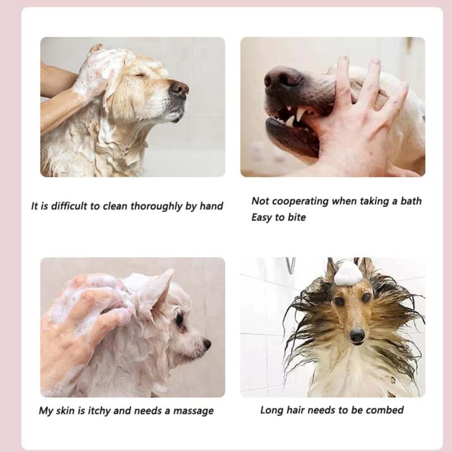 Apply Shampoo: Apply your pet’s shampoo directly onto their coat or onto the glove.