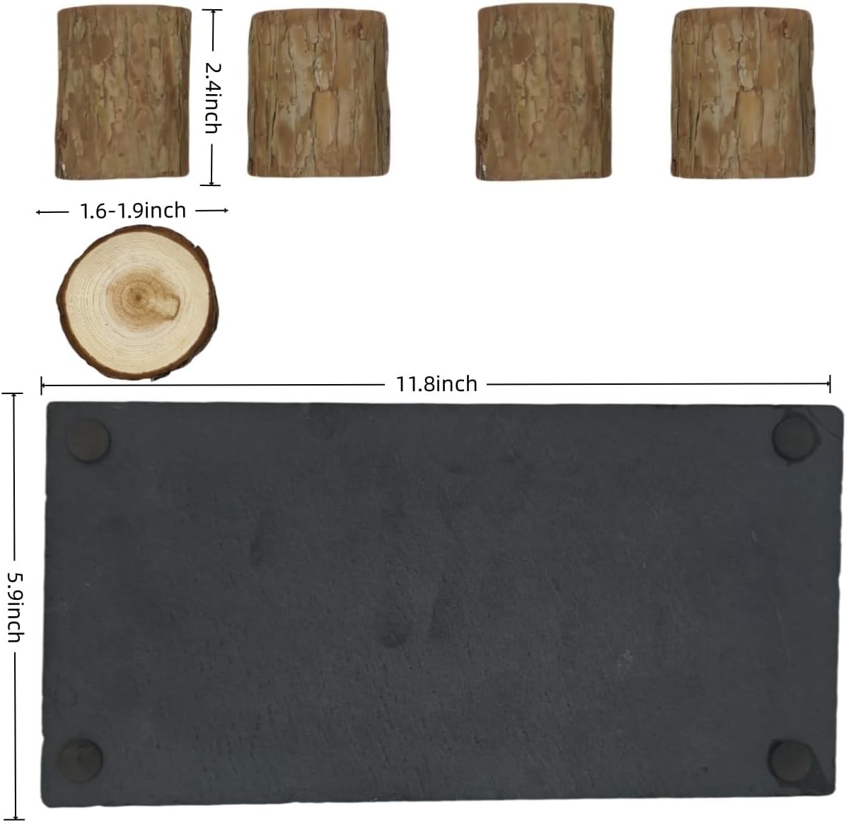 Natural Rock Slate & Wooden Logs Set: Includes one 11.8″×5.9″ (30×15cm) natural rock slate and four 2.4″ high×1.6″-2″ diameter wooden logs — essential bearded dragon tank accessories.