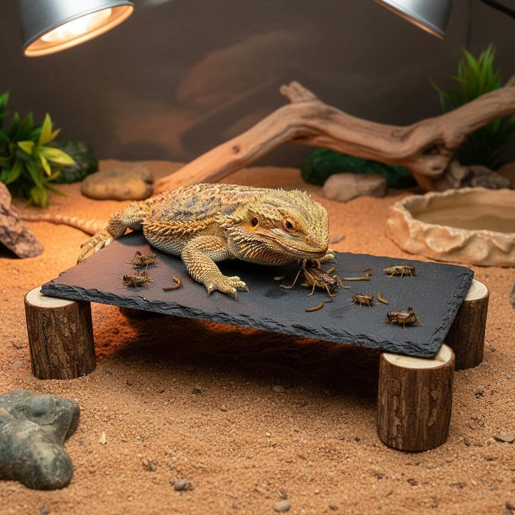 2 reviews for Bearded Dragon Tank Accessories Slate Rocks for Reptiles Slate Tiles for Reptiles Reptile Tank Accessories for Bearded Dragons Geckos Ball Pythons Tortoise Small pet Feeding Table