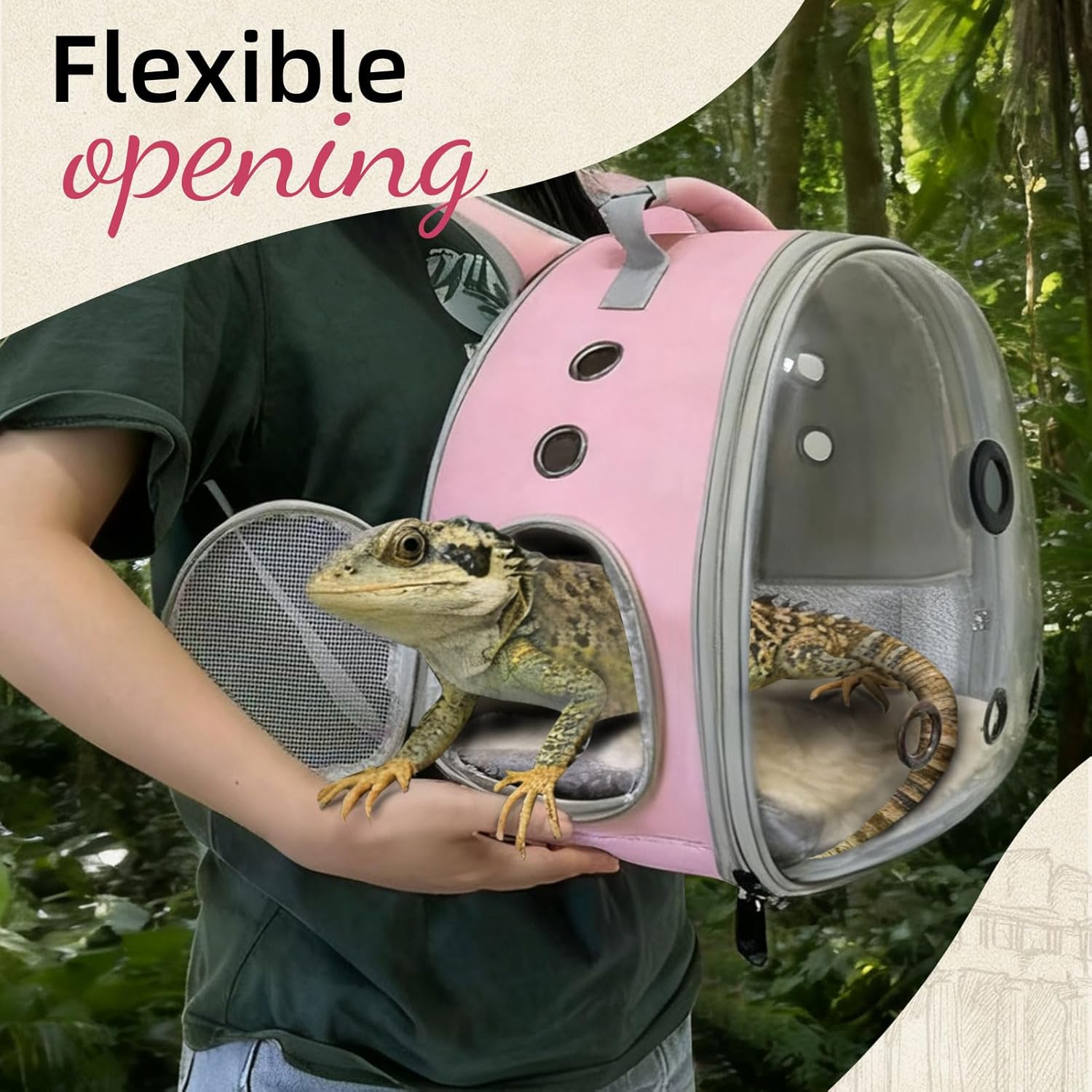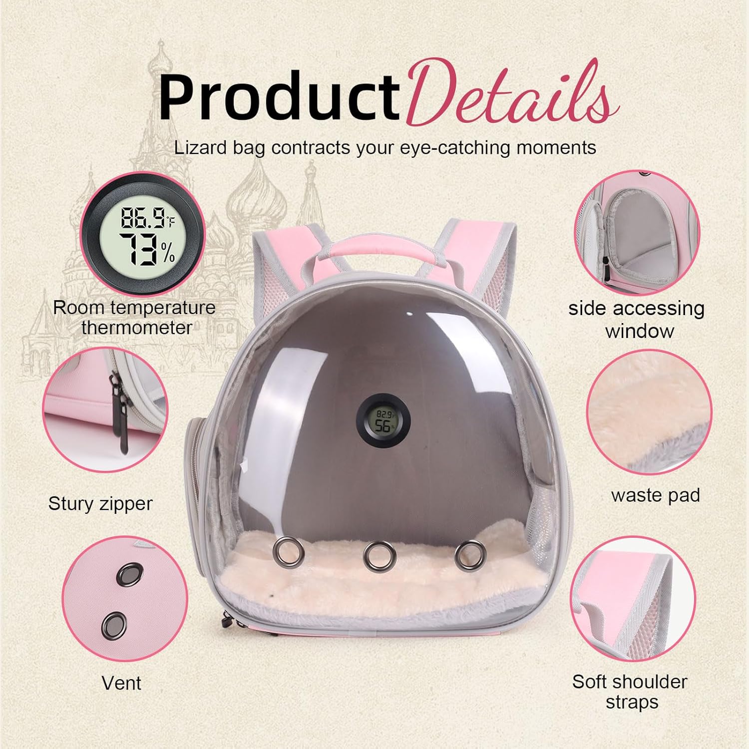 2 reviews for Bearded Dragon Travel Backpack Carrier with Reptile Thermometer and Humidity Gauge Lizard Travel Cage Space Capsule Clear Bubble Window Astronaut Reptile Carrier Bag for Ball Python (Pink, Backpack)