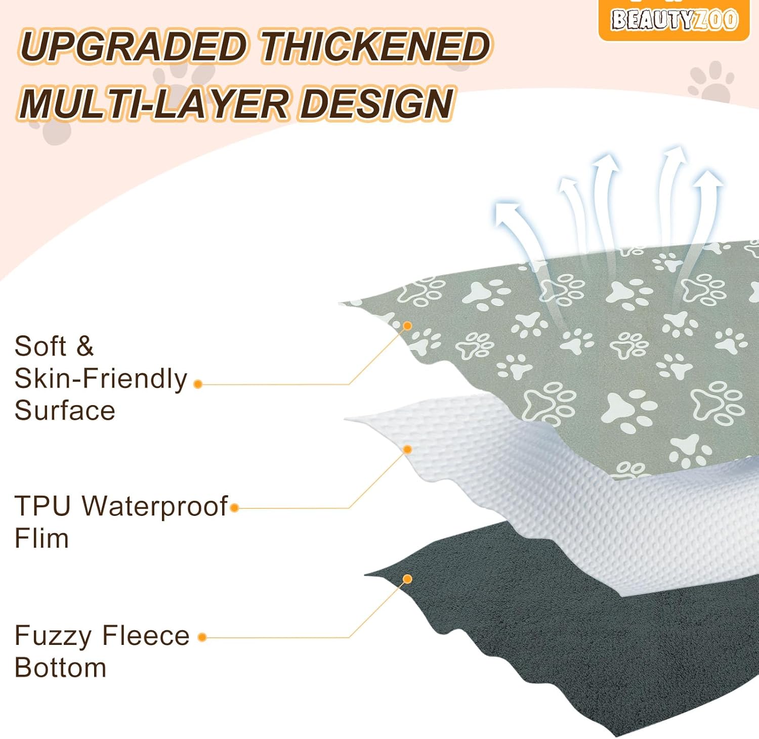 A combined water-absorbing and leak-proof layer quickly absorbs and locks liquids, providing a comfortable environment for your small pets while preventing wet chairs or floors.