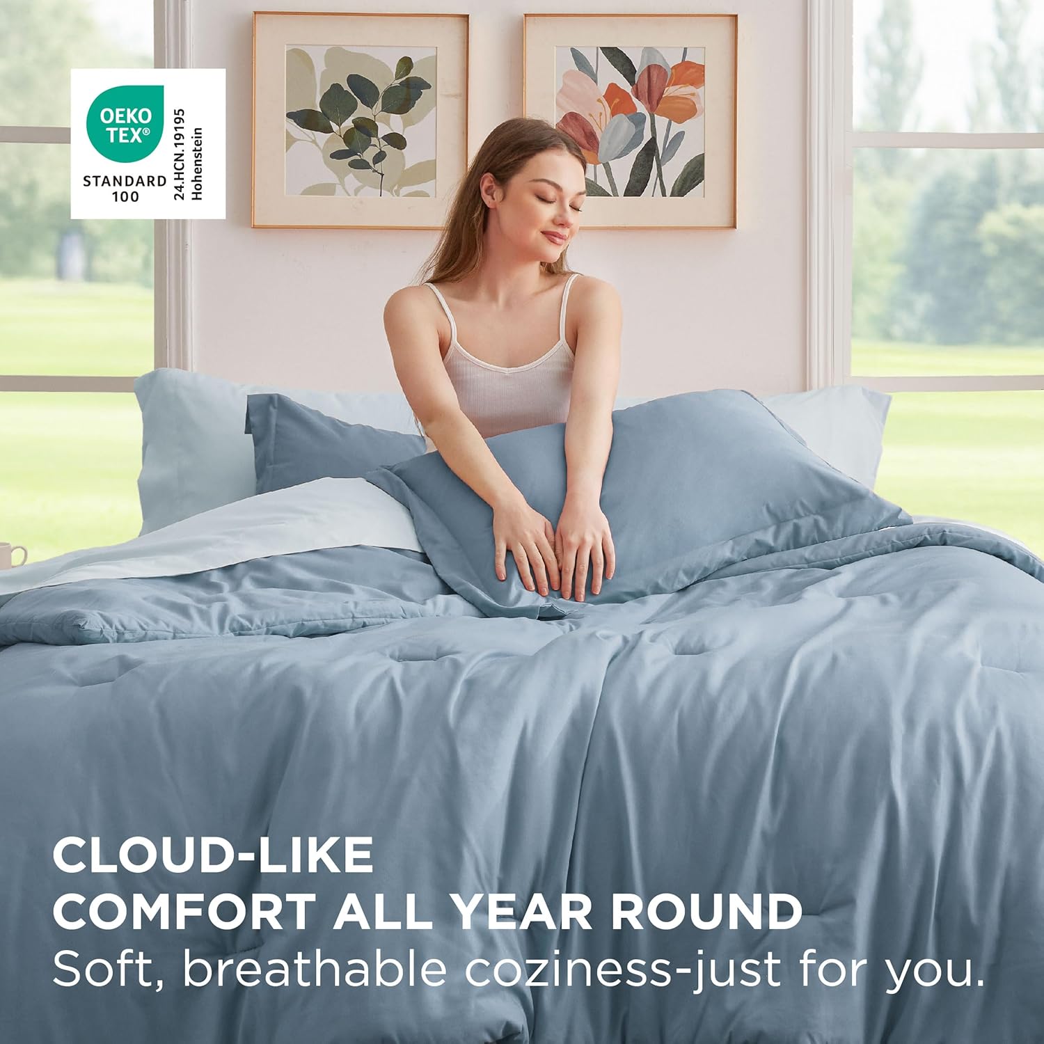 Fluffy and Comfortable: This queen comforter set is crafted from ultra-fine microfiber and filled with cloud-like fibers, providing an ideal blend of weight, softness, and warmth for year-round comfort.