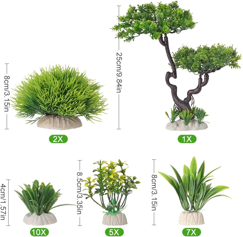 BEGONDIS 25Pcs Artificial Aquarium Tree & Plants Set – Green Fake Aquatic Plants for Aquarium Decorations