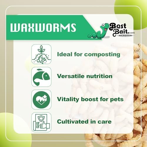 Best Bait 50 Count Premium Live Waxworms for Reptiles, Birds, Amphibians & Fishing Bait – High-Protein, Calcium-Rich Soft-Bodied Larvae – Ideal for Bearded Dragons, Geckos, Chickens & Trout