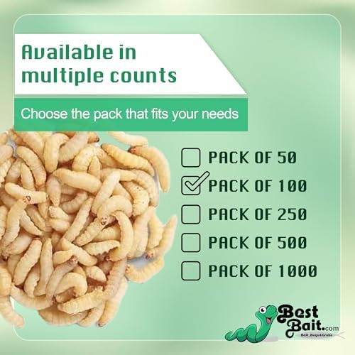 Freshness Assured with Convenient Packaging: Each container is packed in sawdust to ensure freshness and requires no refrigeration. Available in a 50-count pack, these waxworms are easy to store and handle, making it simple to have a fresh supply ready whenever you need them.