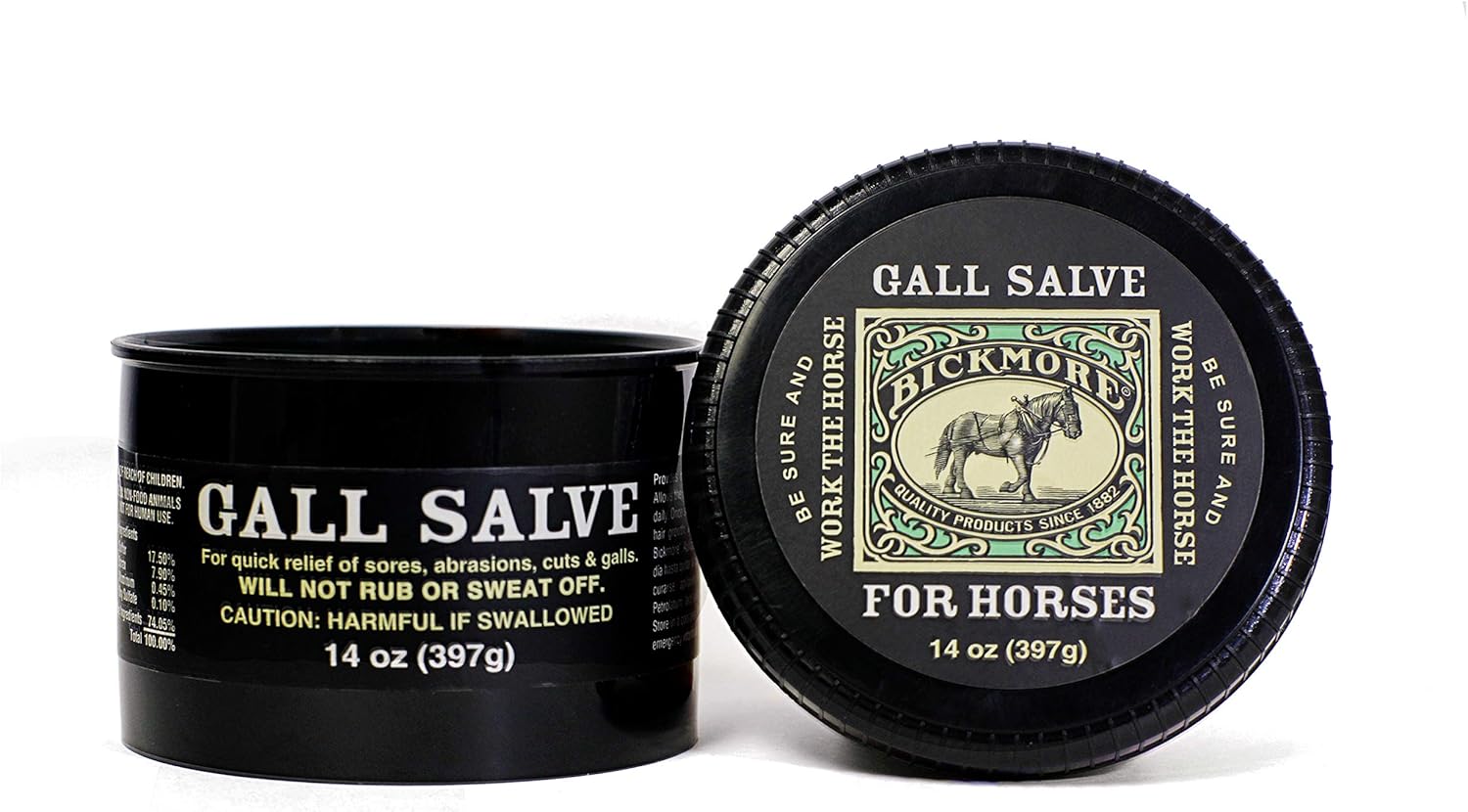 Bickmore’s Gall Salve has been a proven medication since 1892. It’s the preferred treatment for any wounds, cuts, sores, or scratches suffered by your horse. As a multi-purpose, topical antiseptic ointment, our Gall Salve contains a unique combination of emollients to soften, soothe, and lubricate damaged skin. Our formula will not rub or sweat off, allowing your horse to work while healing. Do not use on puncture wounds.