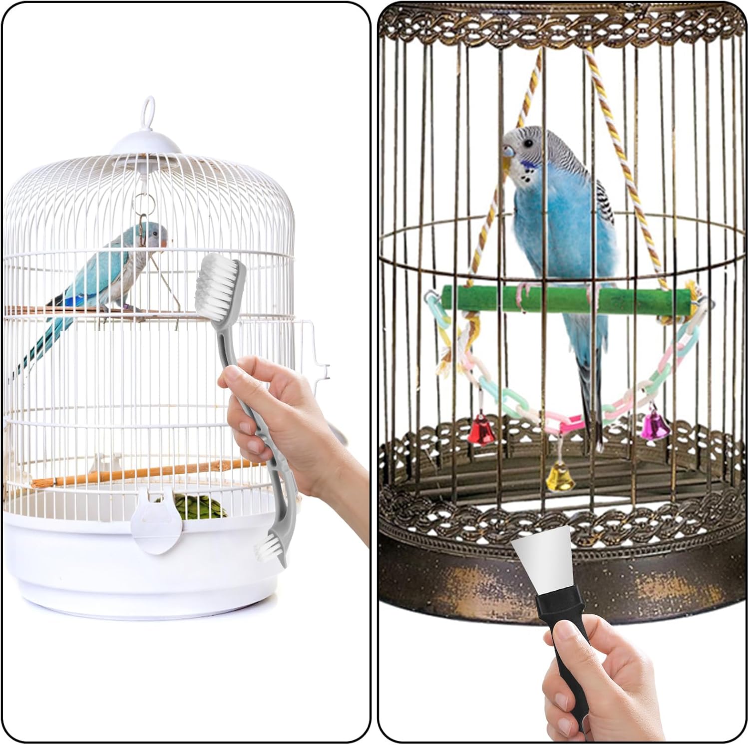 —-This bird cage cleaner is equipped with brushes on both ends and adopts a reverse bristle design.