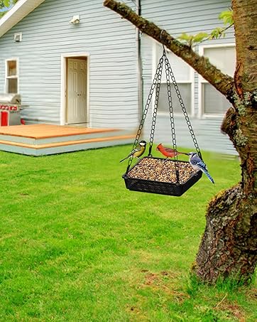 𝐋𝐚𝐫𝐠𝐞 𝟓𝐋𝐁 𝐒𝐞𝐞𝐝 𝐂𝐚𝐩𝐚𝐜𝐢𝐭𝐲: Bird feeder’s measuring 9.45″ × 7.28″ × 7.28″, wild bird feeders holds ample sunflower seeds, peanuts, or safflower. It attracts various birds such as cardinals, chickadees, sparrows, bluebirds, warblers, and starlings.
