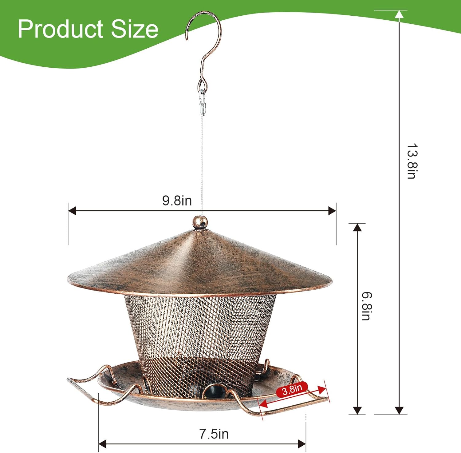 Bird Feeder for Outdoor, Rainproof Weatherproof Metal Hanging Wild Bird Feeder with 9.8″ Roof 3 LBs Seeds Capacity, Easy to Clean & Refill