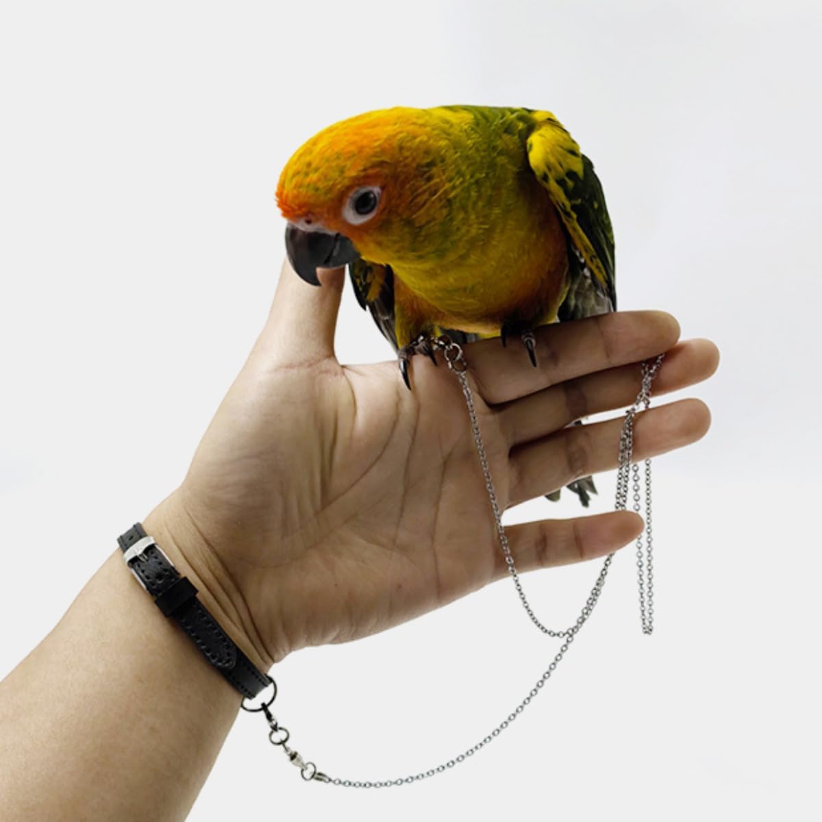 [Reasonable Design]The chain has a rotating clasp that allows birds to move freely. The reinforced chain and foot ring can adapt to all kinds of parrots, and also suits for the large size.Our design is reasonable and safe to use, it will not harm the legs of the birds and allow them move freely, a useful tool for bird training.