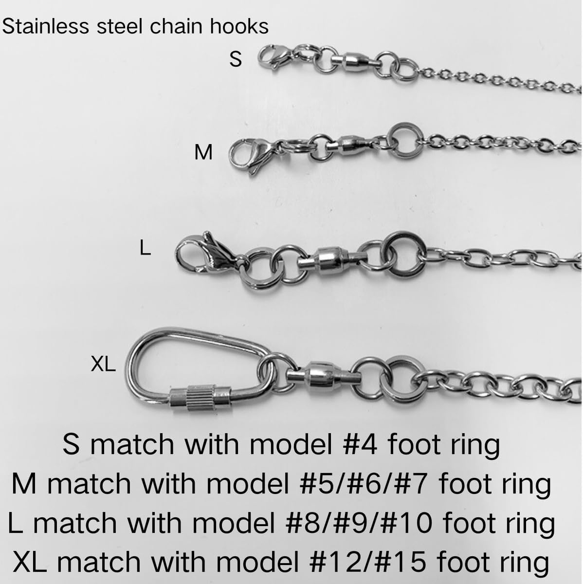 Specification: Condition: 100% Brand New Item Type: Parrot Training Foot Chain Material: Stainless Steel, Leather, Alloy Color: As Pictures Shown Product Size: 9 Sizes, as pictures shown Package List: 1 x Foot Ring, 1 x Stainless Steel Chain, 1 x Leather Wrist Strap, 2 x Alloy Connecting Rings Note: 1.It is recommended to let your parrot wear the anklet without a chain at first, as some birds may be frightened and unable to adapt to the chain at first, and after the bird has adapted to the anklet, try to connect the chain to it. 2.There are two ways to wear the anklet, please refer to the video. For the first time, it is recommended that two people cooperate to wear for birds.