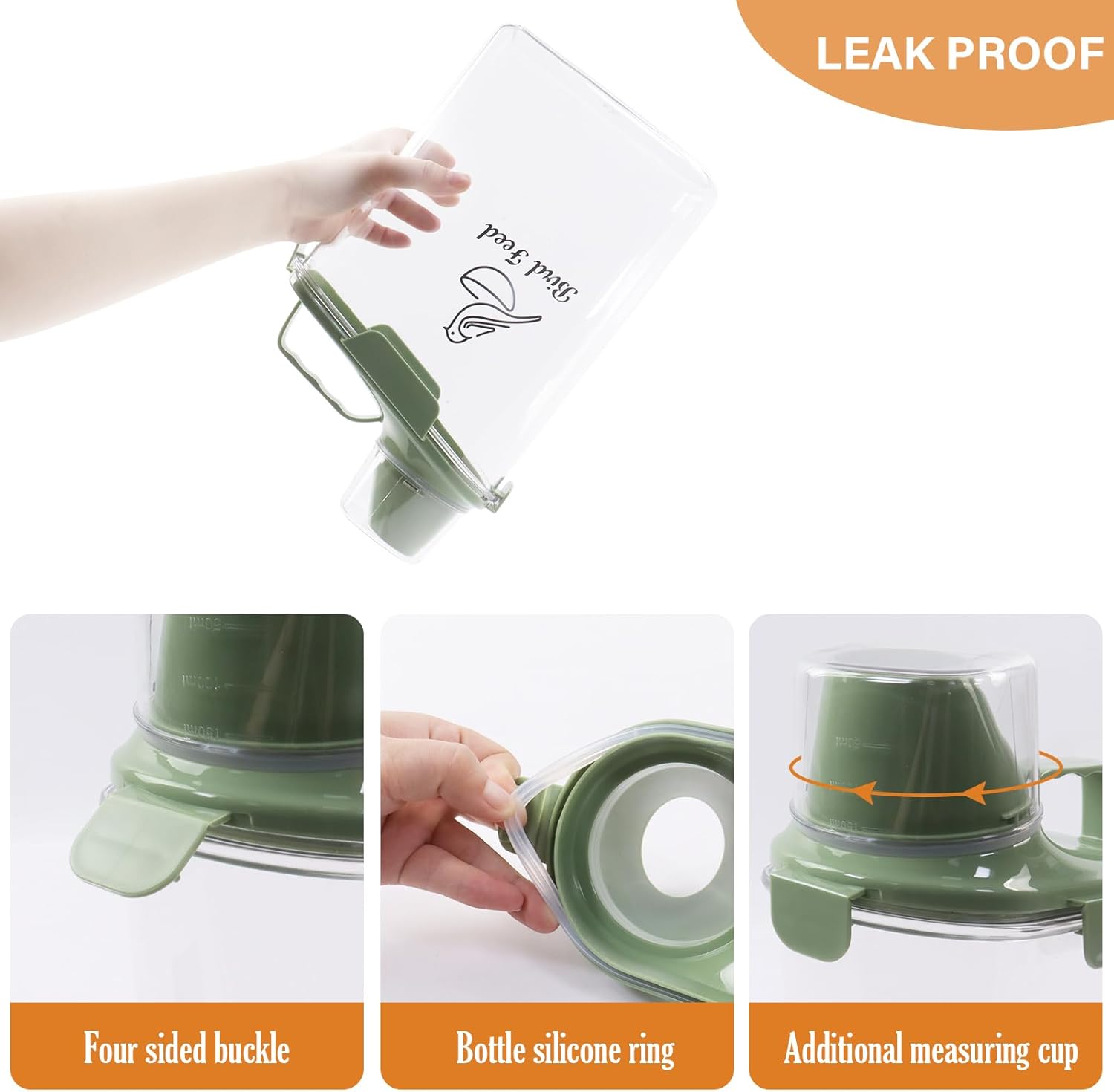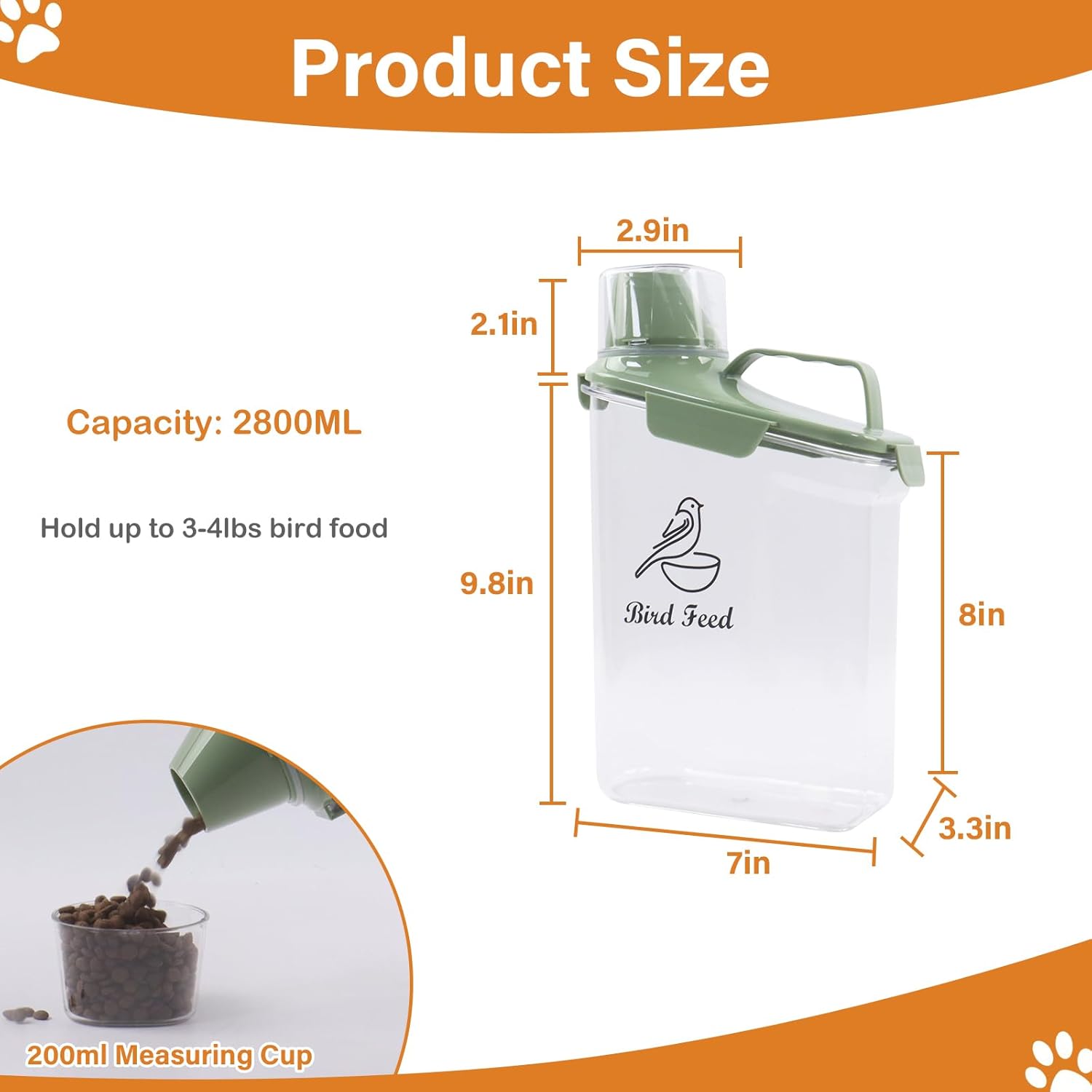 Bird Seed Storage Container Portable-3 Qt/2.8 L Clear Pet Food Container-with Measuring Cup/Lid,Airtight Wild Bird Seed Dispenser for Storing Sunflower Seed|Squirrel proof|BPA Free-Green