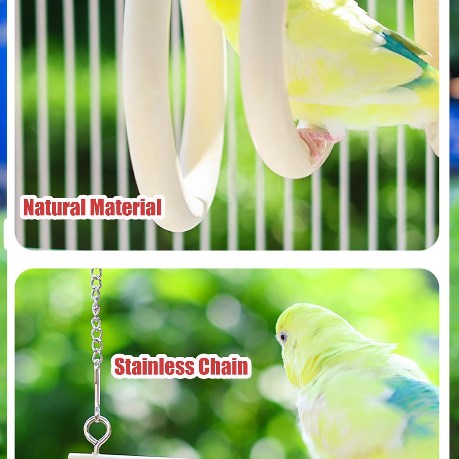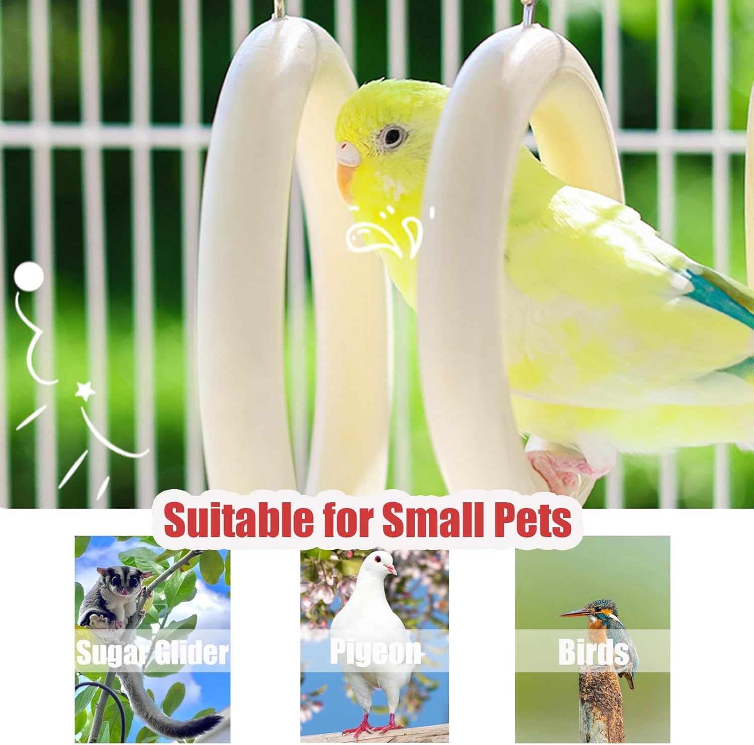 These Bird Swing Rings are a great addition to my cage setup. The natural wooden material looks safe and sturdy, and my cockatiel enjoys climbing and perching on the rings. The design encourages exercise and play, which helps keep birds active and entertained.The four rings give plenty of options for climbing, swinging, or resting. Installation was very easyâI just hung it from the top of the cage and it was ready to use. I also like that it can work not only for parrots like conures, budgies, cockatiels, and lovebirds, but also for smaller pets such as finches, canaries, or even hamsters.Overall, itâs a simple but fun accessory that adds enrichment and variety to the cage environment. A great choice for bird owners looking to give their pets more stimulation.
